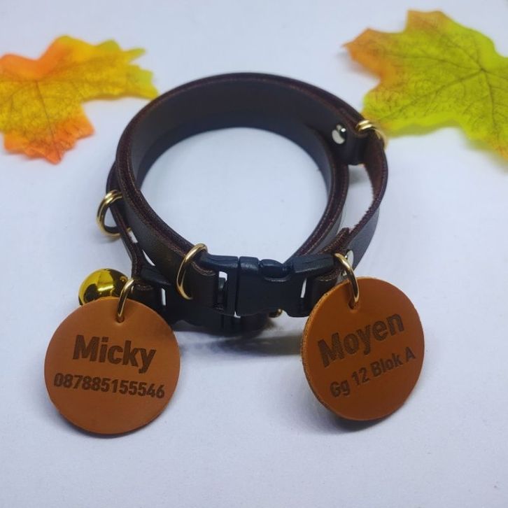 KALUNG KUCING9rATIS UKIR NAMA FREE LONCENG TERMURAH KULIT SINTETIS PREMIUM