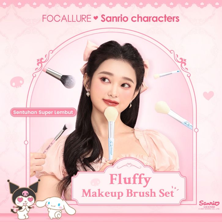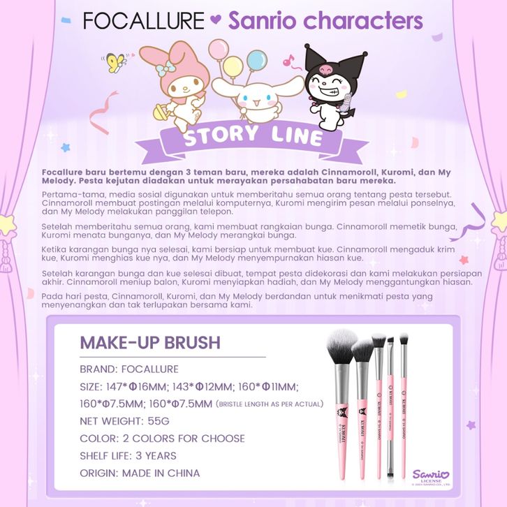 Set Kuas Makeup Profesional FOCALLURE X Sanrio 5 Pcs High Quality Premium Set Aksesori Riasan Kecantikan