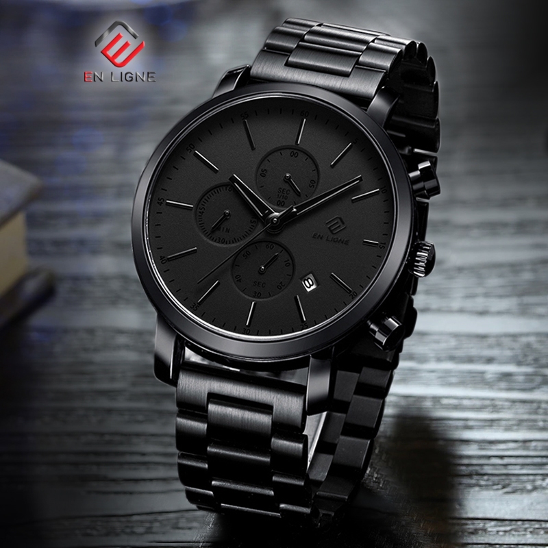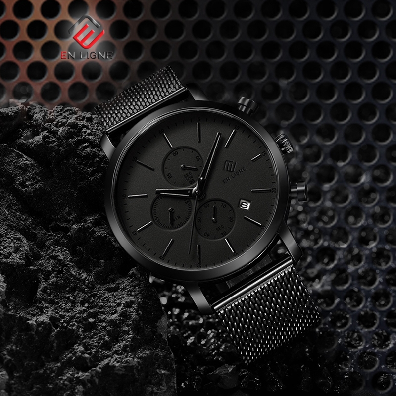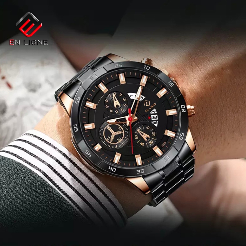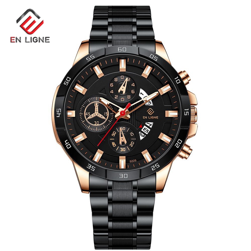 EN LIGNE - Jam Tangan Pria Kasual Analog Quartz Tanggal Tali Rantai Stainless EL7169RT