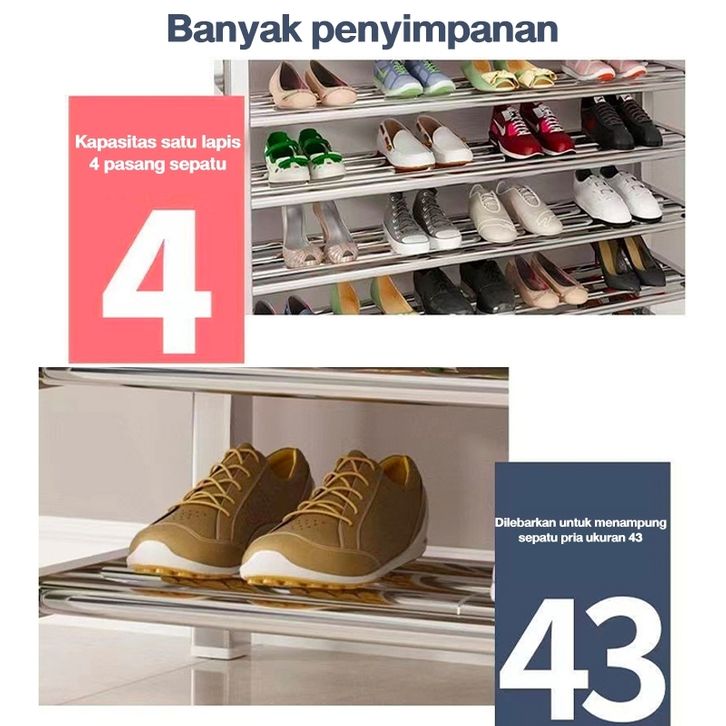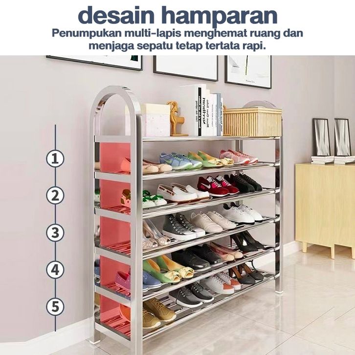[Mall] Rak Sepatu Stainless Steel 6 Tingkat Rak Sepatu Kokoh Tempat Sepatu Sendal Besi Mudah Bongkar Pasang