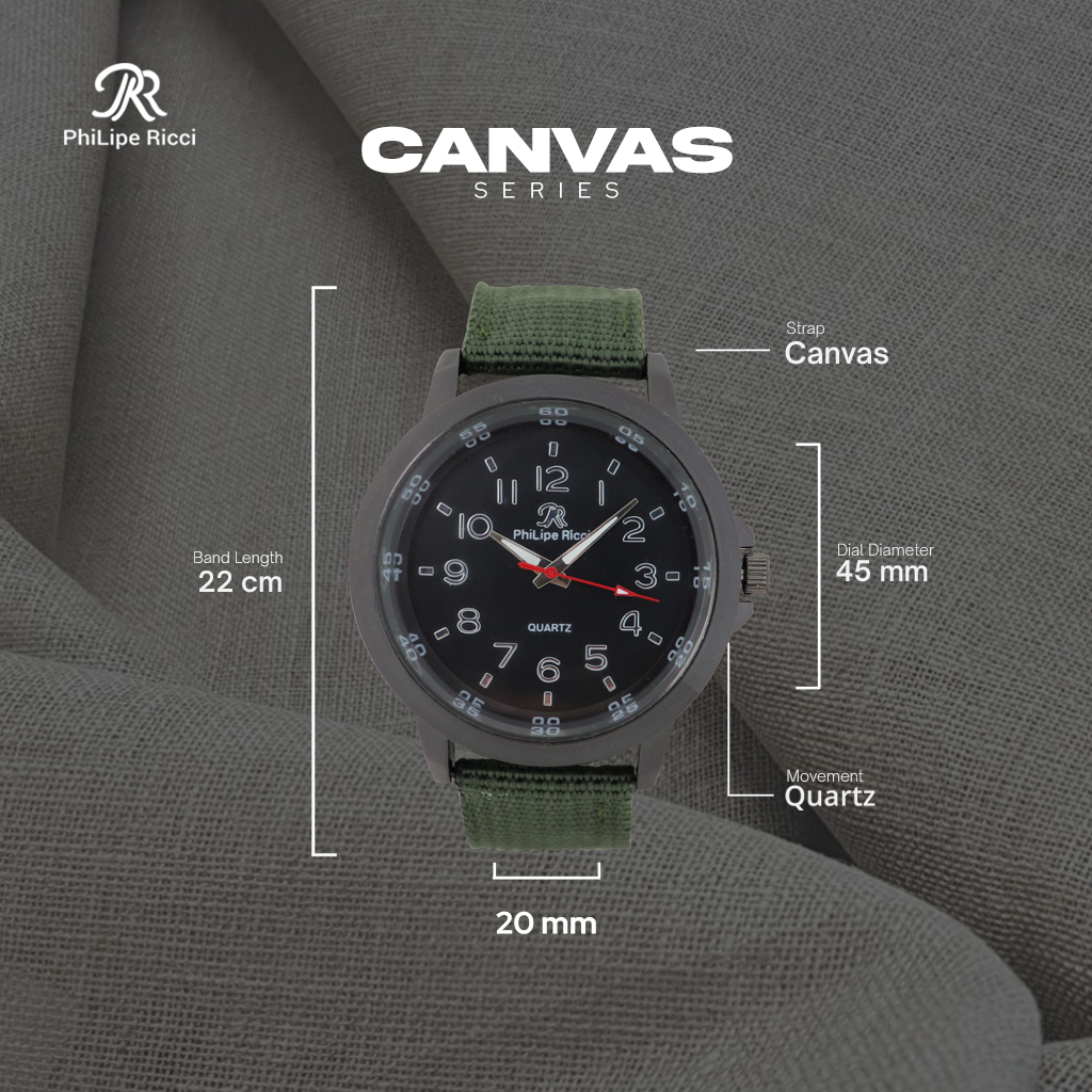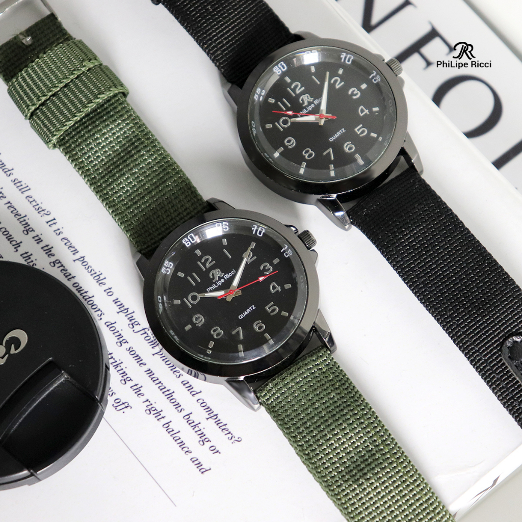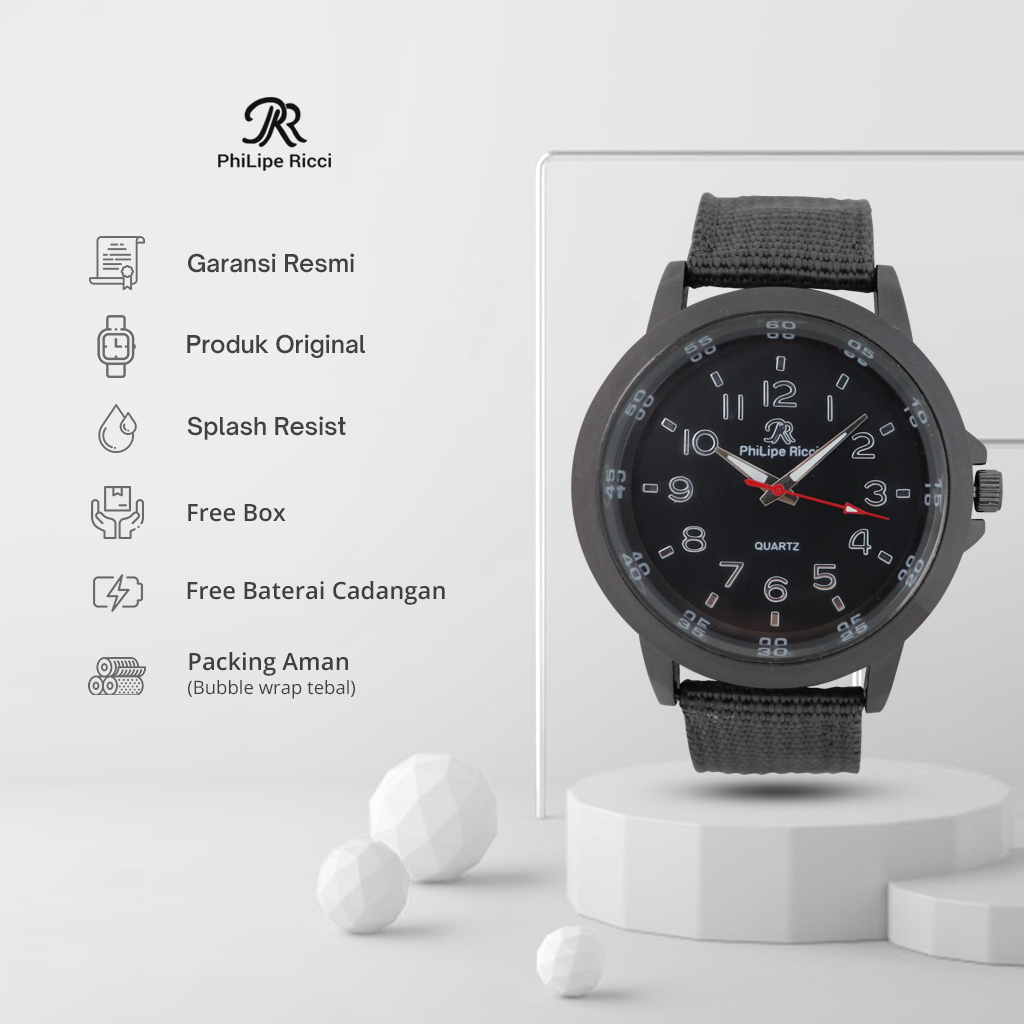 PhiLipe Ricci Jam Tangan Pria Tali Kanvas Terbaru Analog KNVS1 Free Box