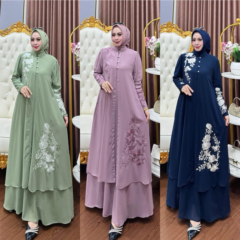 [Mall] GAMIS WANITA MUSLIMAH SET OUTER BAHAN CERUTY BABYDOLL MOTIF BORDIR