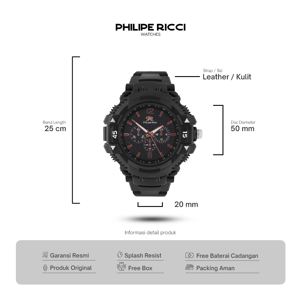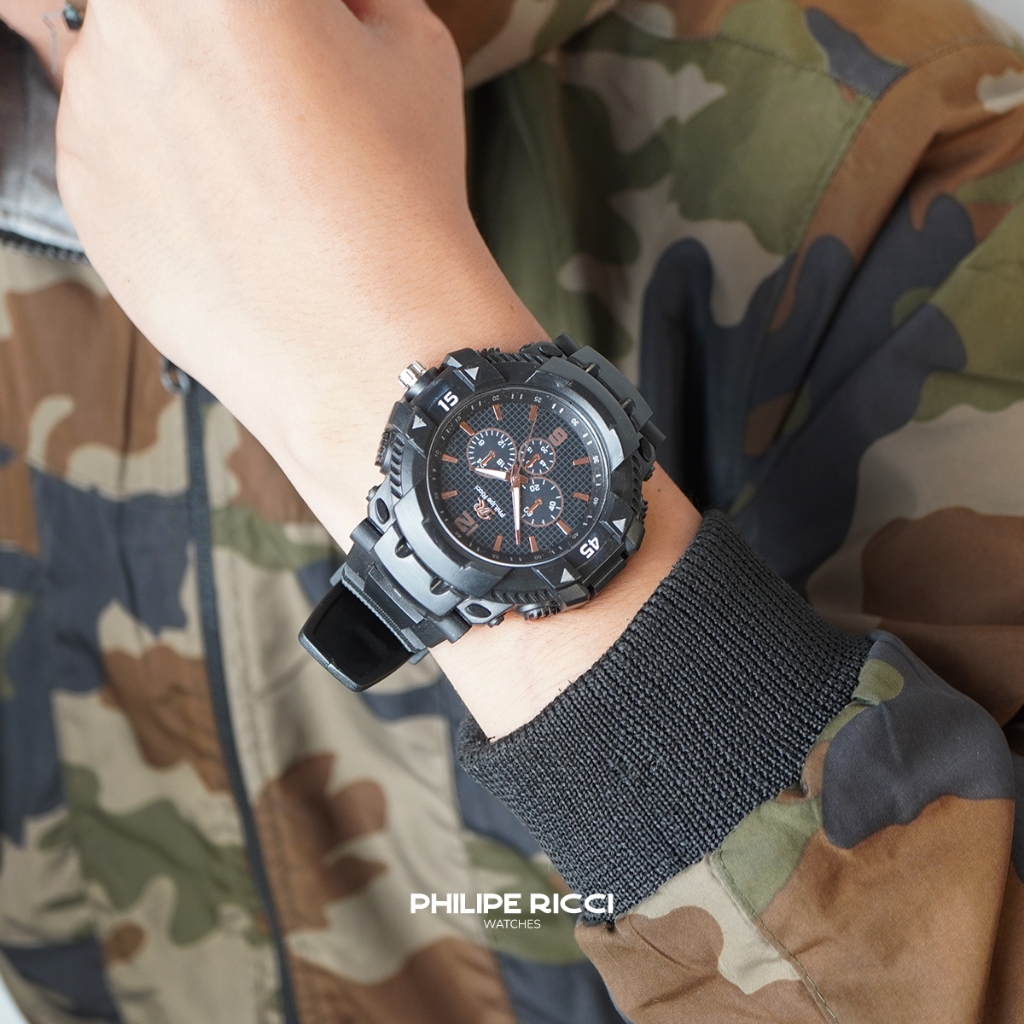 PhiLipe Ricci Jam Tangan Pria Sport Hitam Trendy Terbaru Original 1920K Men Watches Free Baterai
