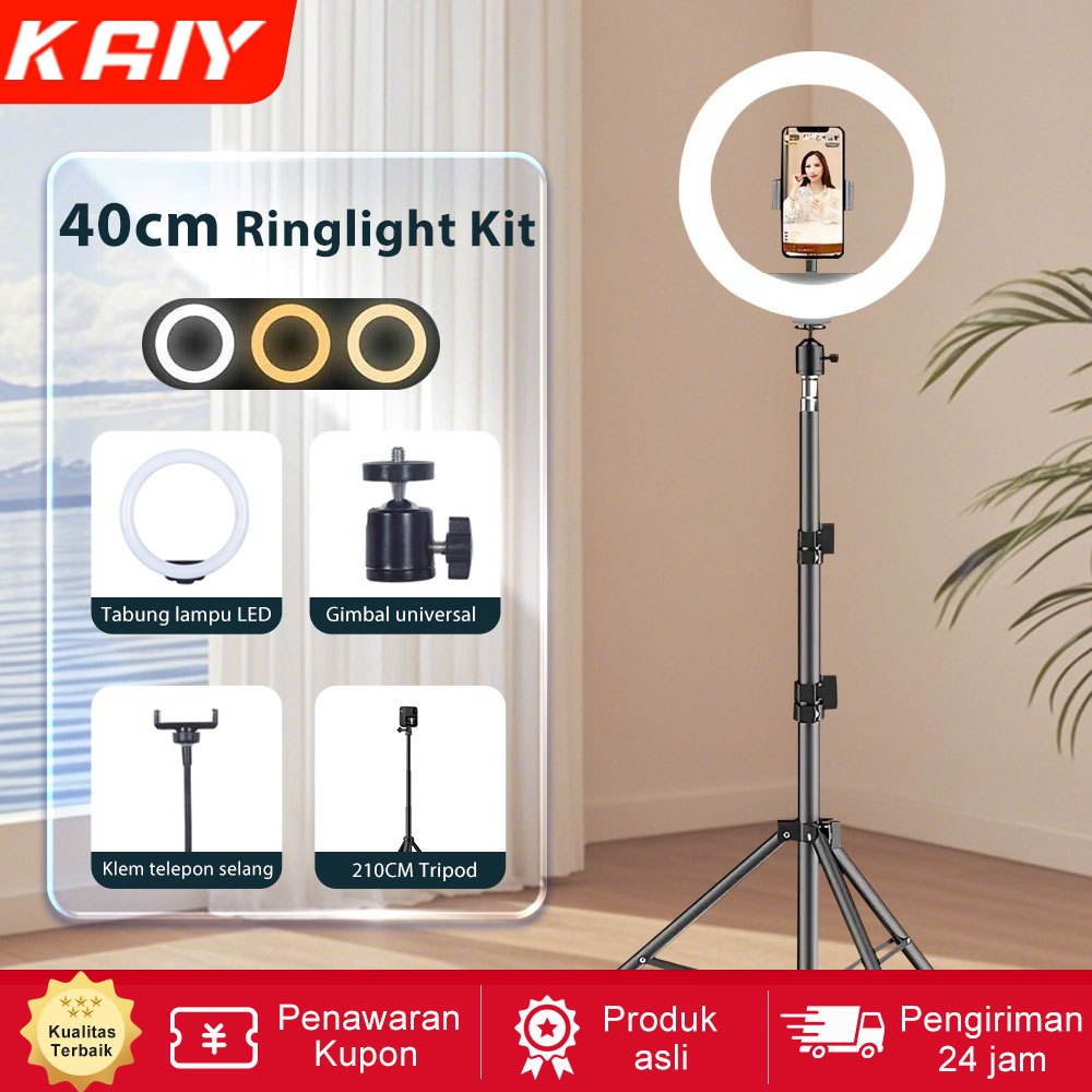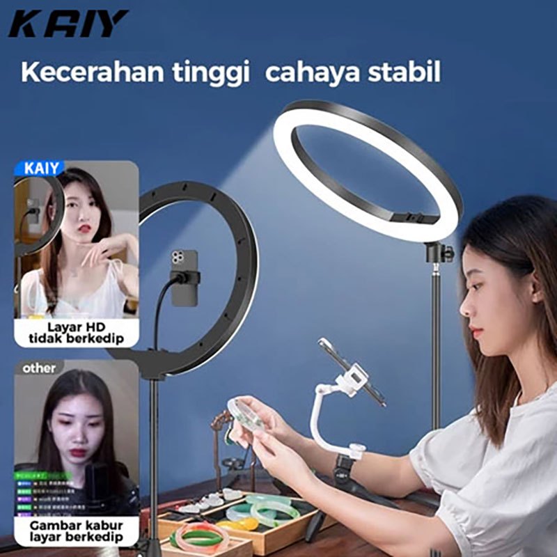 KAIY RingLight 33cm +210cm Tripod+Phone Holder 3 Warna Lampu Fotografi Led Video Light For Live Stream