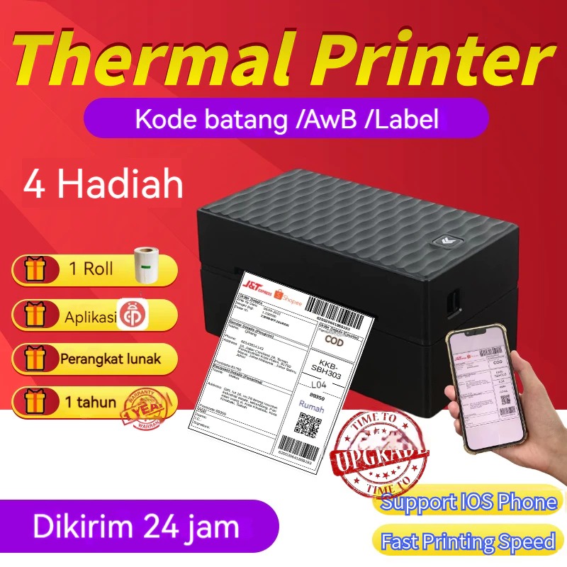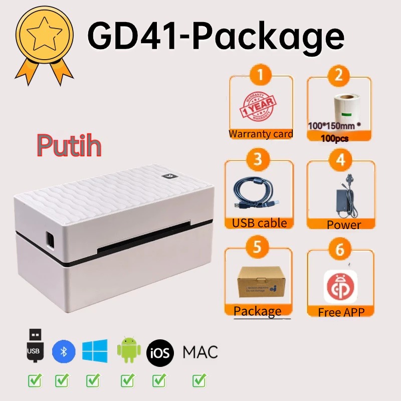 (BEEDOO SHOP) Printer - GD41 Printer Thermal Bluetooth Label Pengiriman Barcode A6 4inci 110mm Printer
