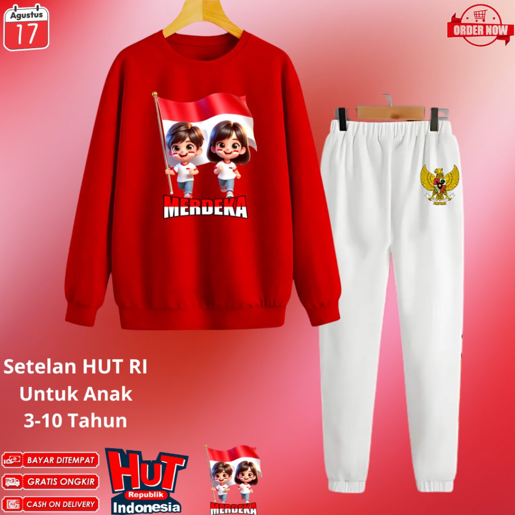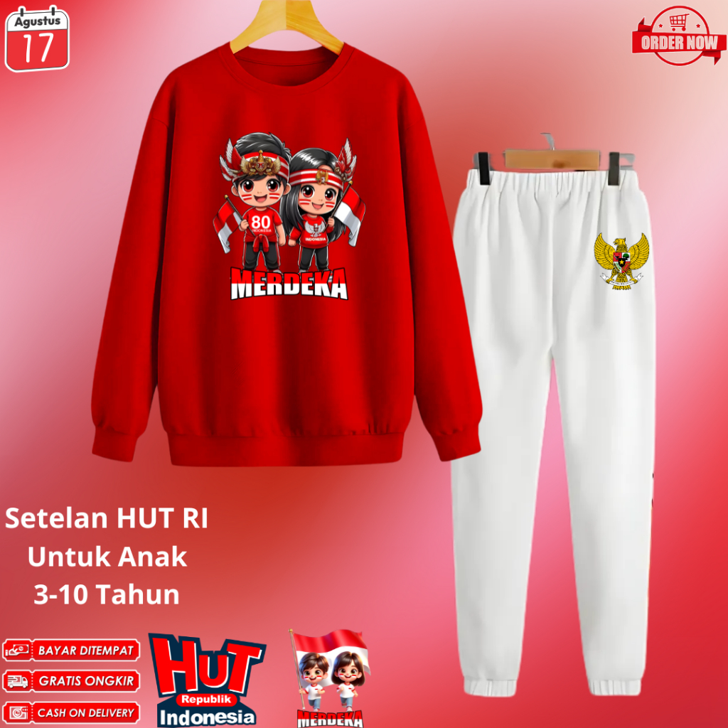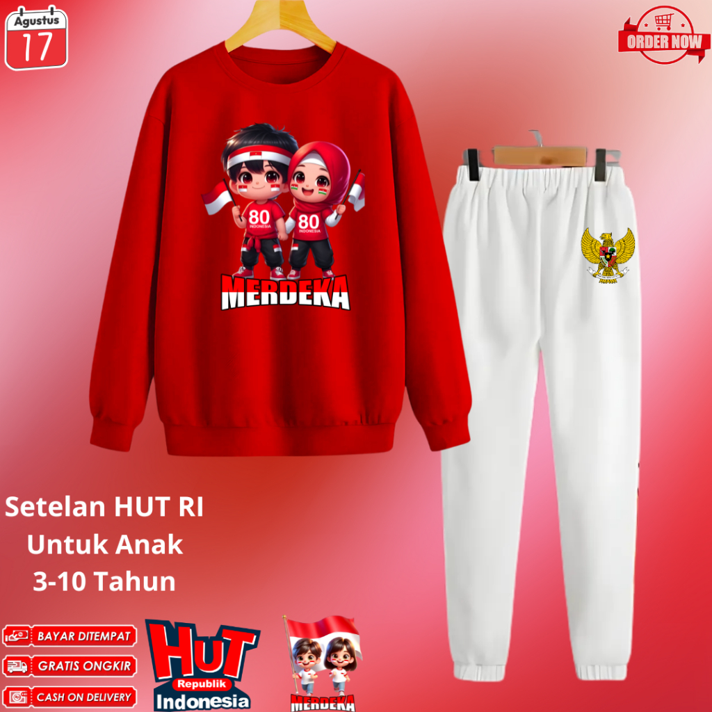 Baju Setelan Anak Lengan Panjang Dirgahayu Republik Indonesia Untuk Usia 3-10 Tahun