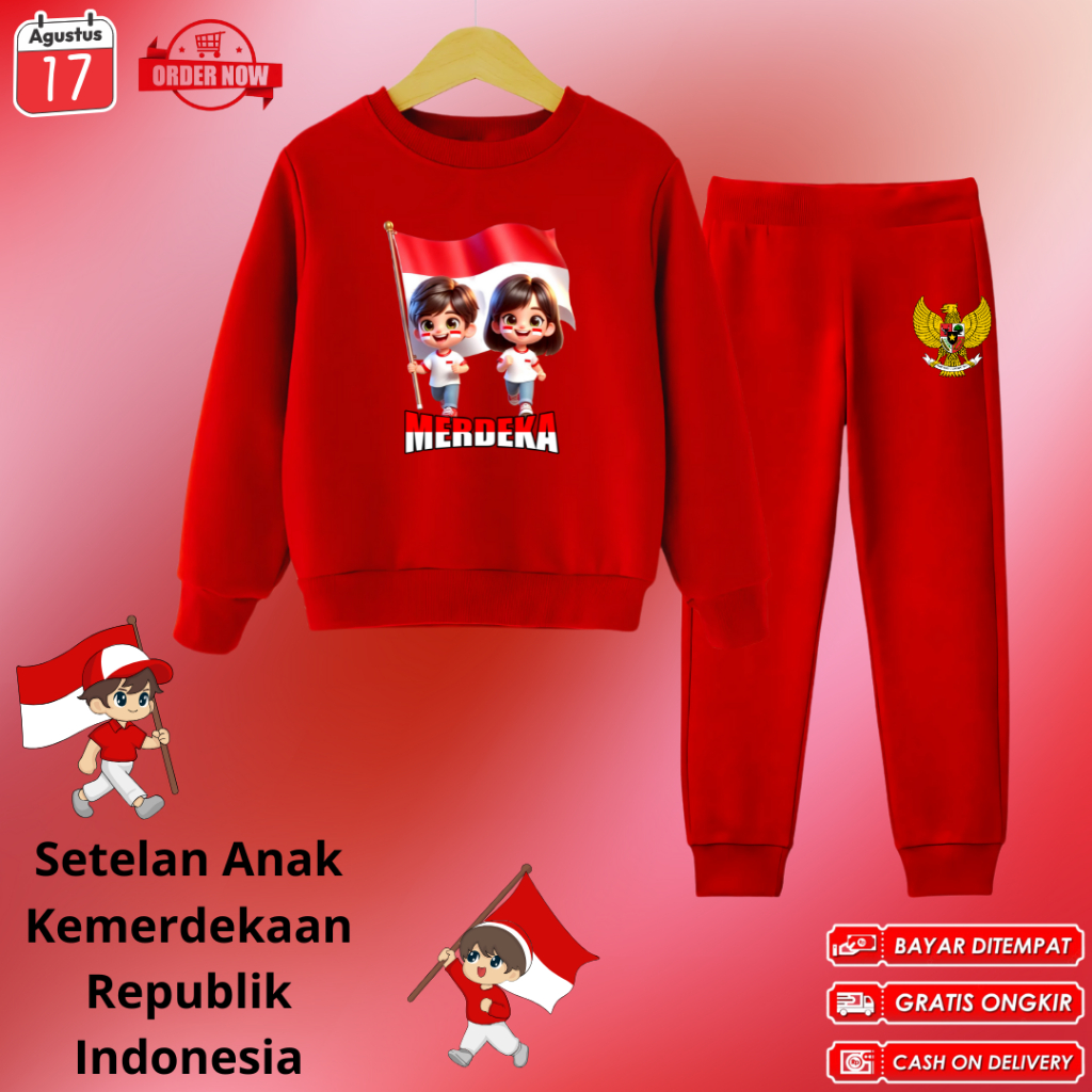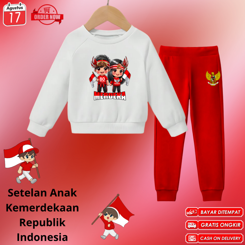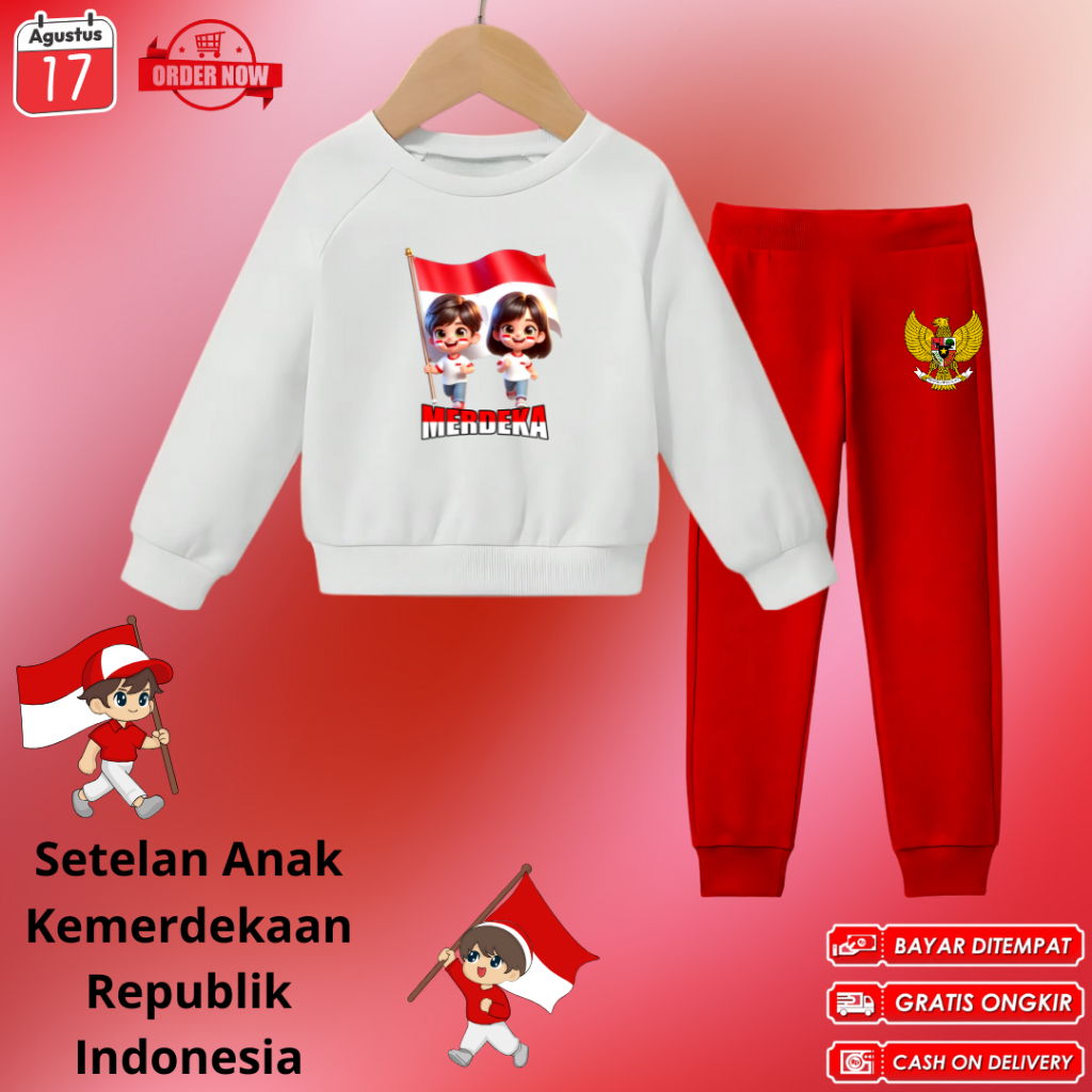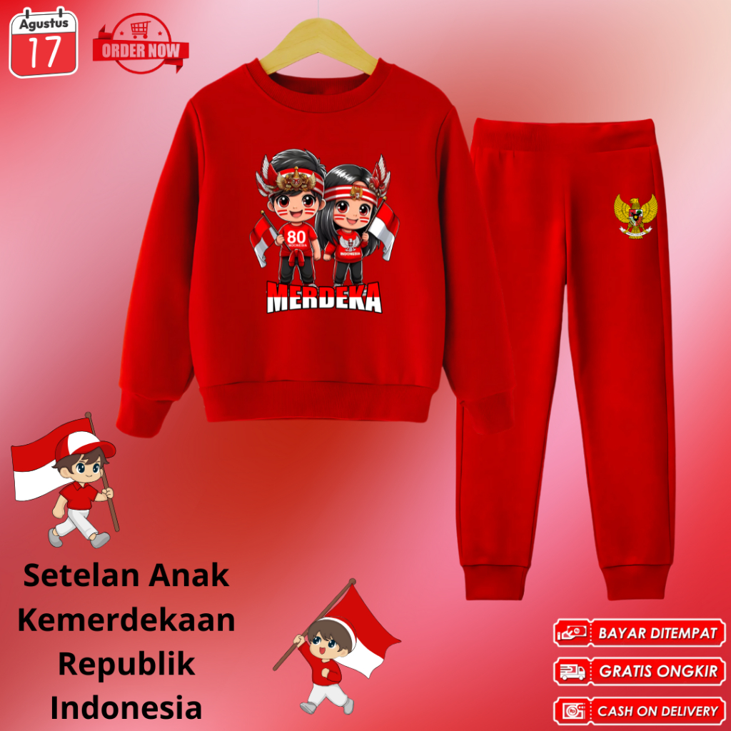 Baju Setelan Anak Lengan Panjang Dirgahayu Republik Indonesia Untuk Usia 3-10 Tahun