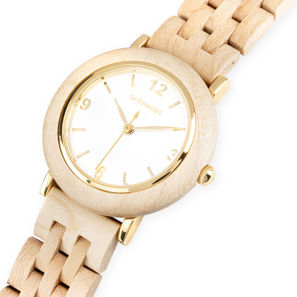 GARVINOES Viena Pear Flower White Jam Tangan Kayu Wanita 34 mm