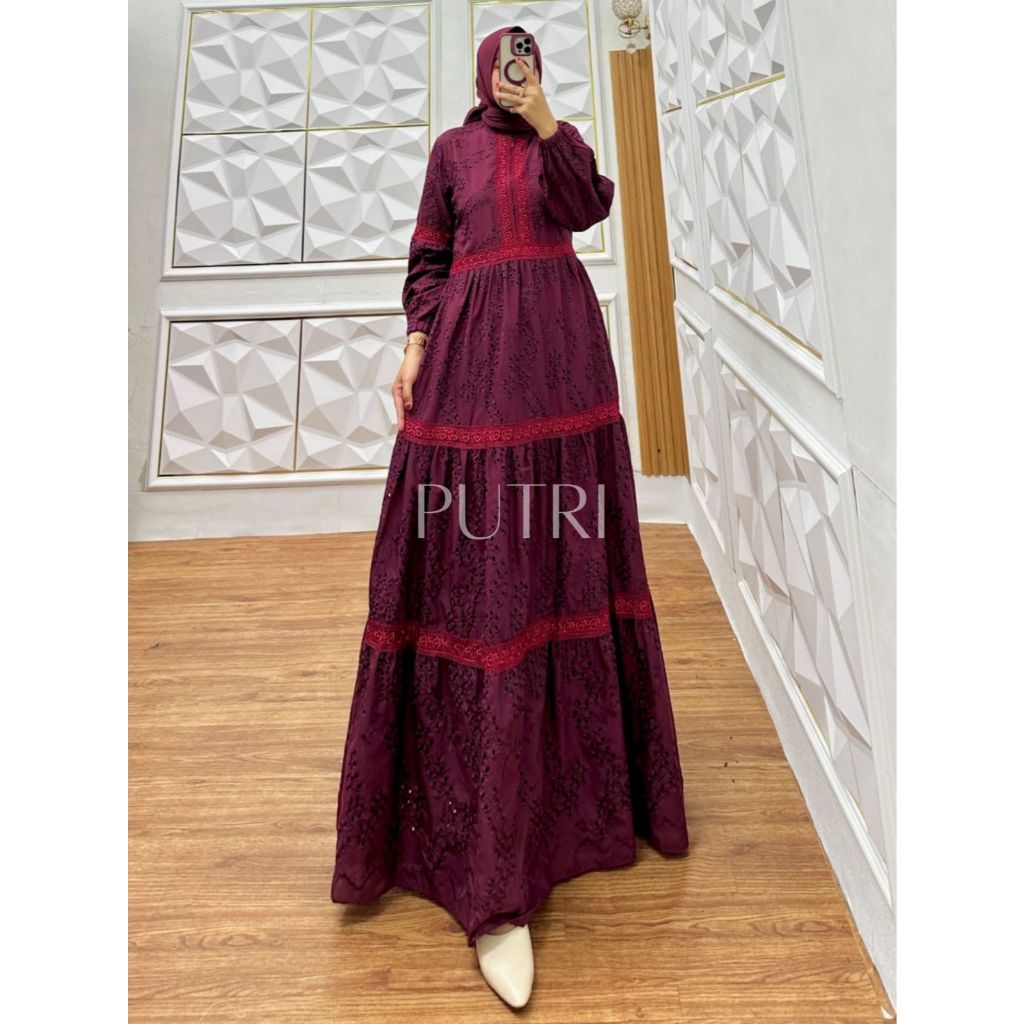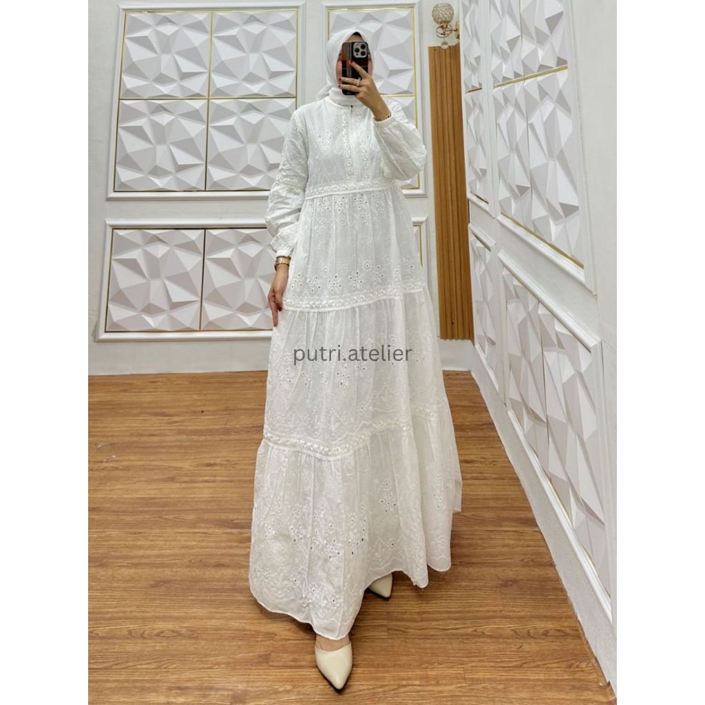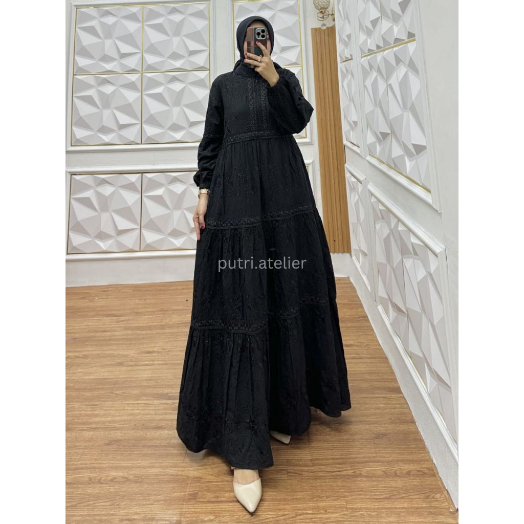 [Mall] AZALEA DRESS GAMIS KATUN BORDIR BOLONG KATBOL UMROH HITAM PUTIH CANTIK KEKINIAN LEBARAN KONDANGAN