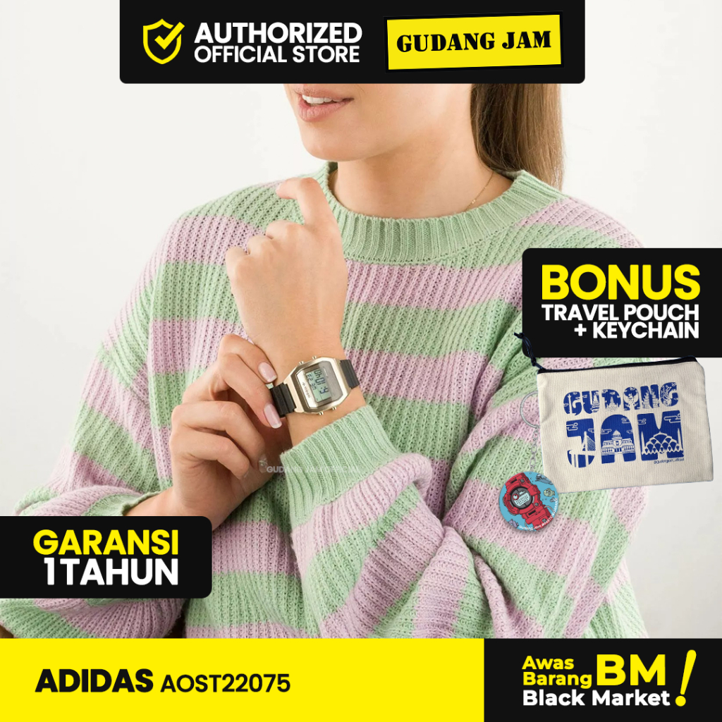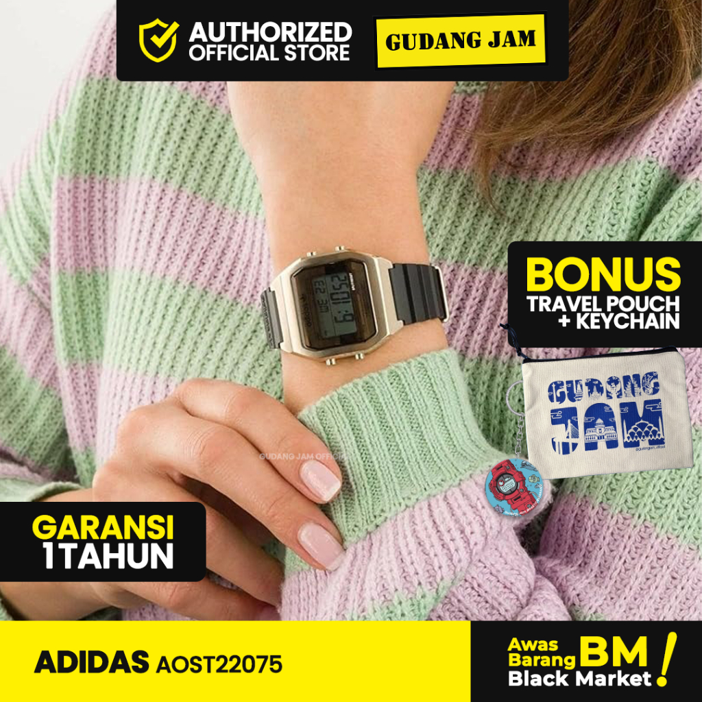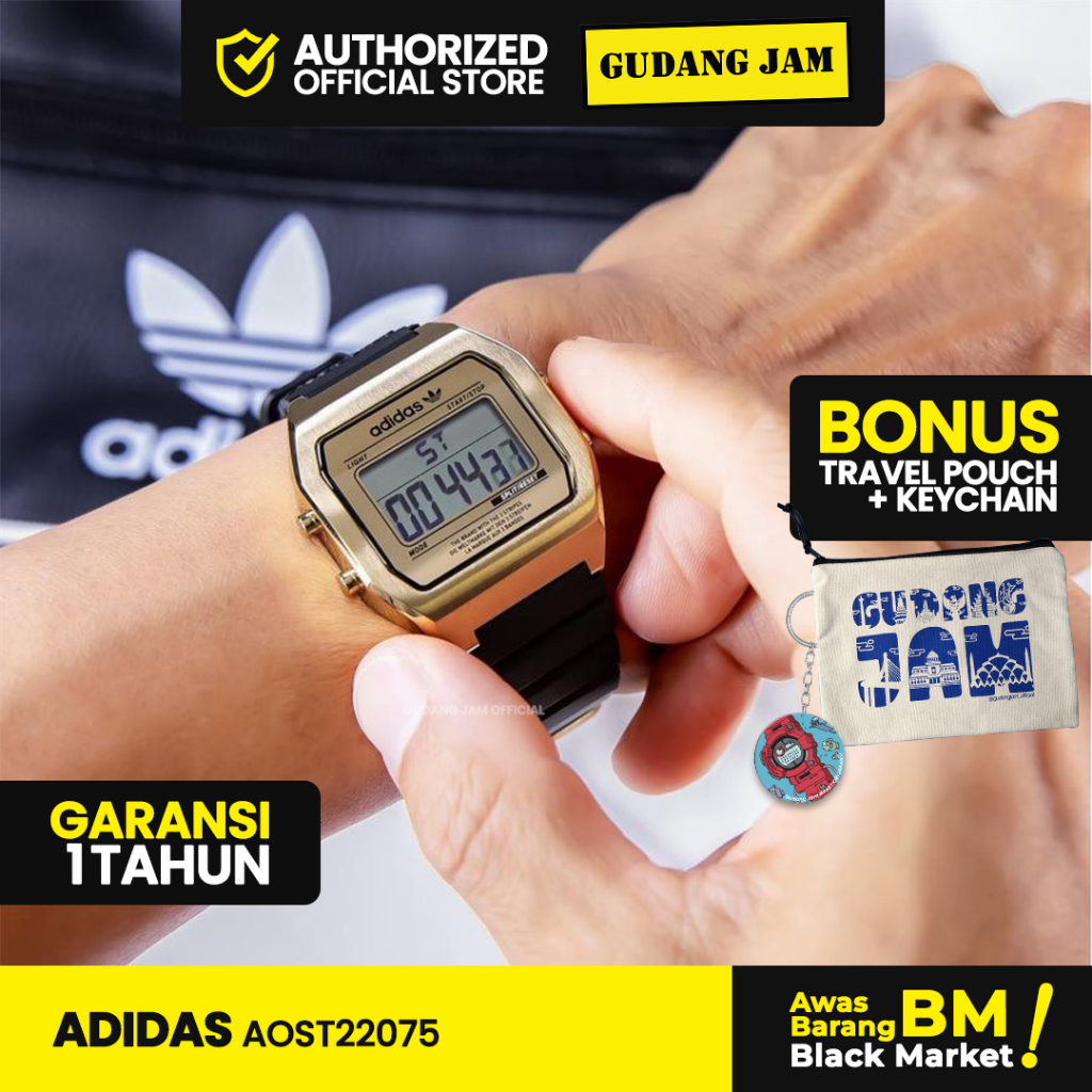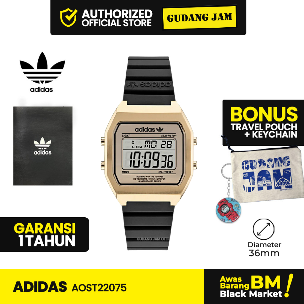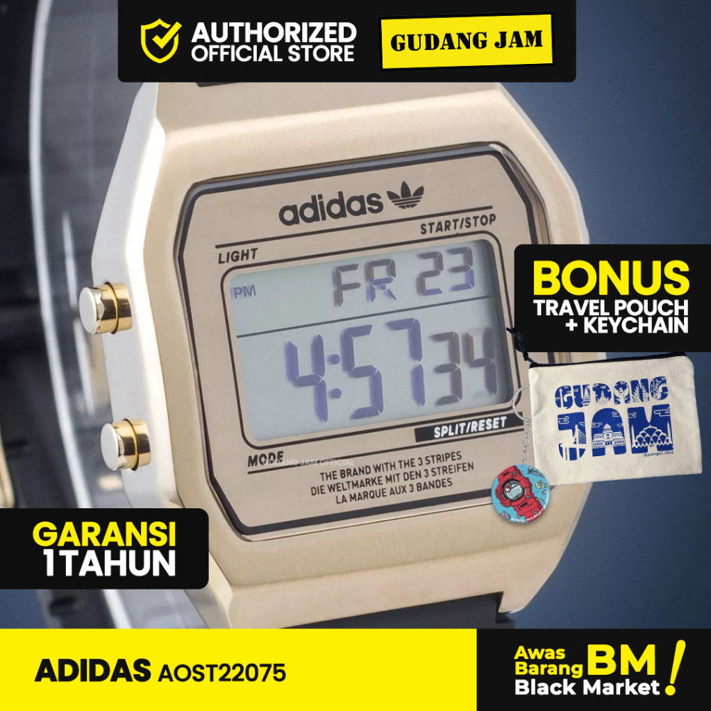 Jam Tangan Pria Wanita Adidas AOST22075 Black Gold Digital Resin