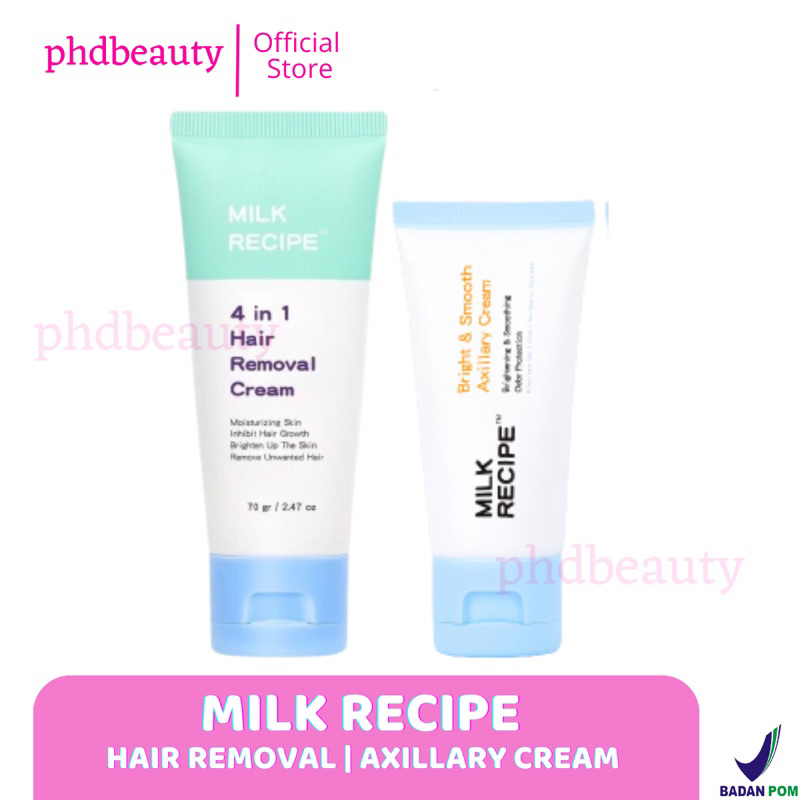 Milk Recipe 4 in 1 Hair Removal Cream Krim Penghilang Bulu Perontok Milk Recipe Bright & Smooth Axillary Cream Brighteni