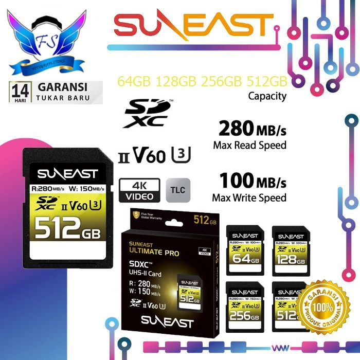 SUNEAST Memory Card Ultimate PRO UHS-II V60 U3 512GB - 256GB - 128GB - 64GB - Class 10 Original