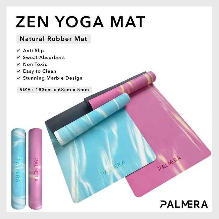 PALMERA Zen Yoga Mat Fuschia - Premium PU Rubber 5mm / Matras Yoga / Matras Olahraga/Matras Premium