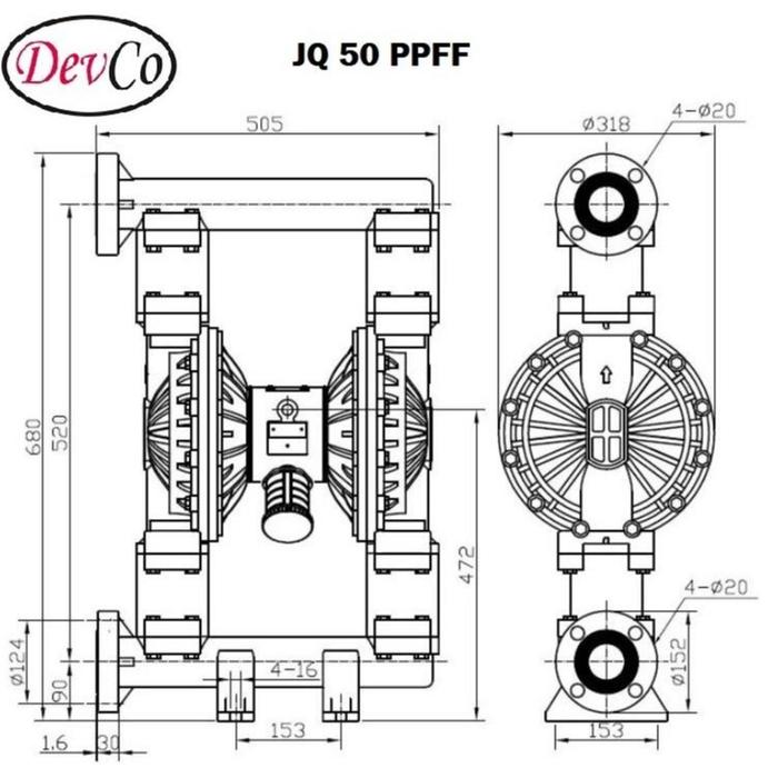 Graco OEM Diaphragm Pump JQ 50 PPFF Pompa Diafragma Devco - 2"
