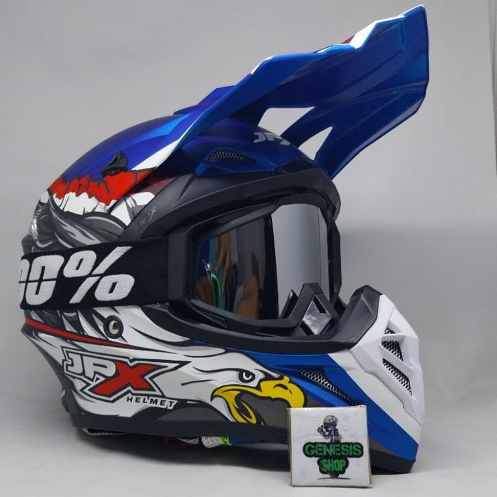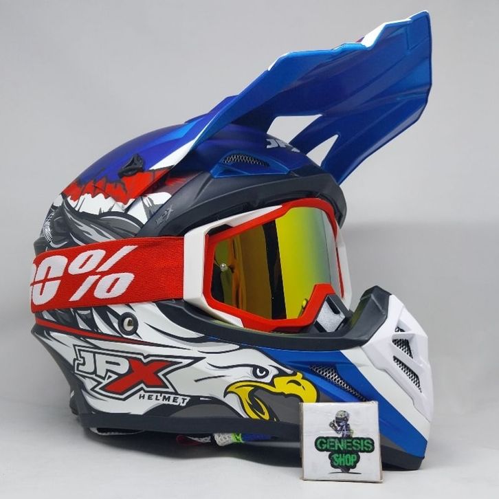 Helm JPX full face helm JPX CROSS FOX1 motif X39 dan goggle 100 GS GOGGLE SAJA