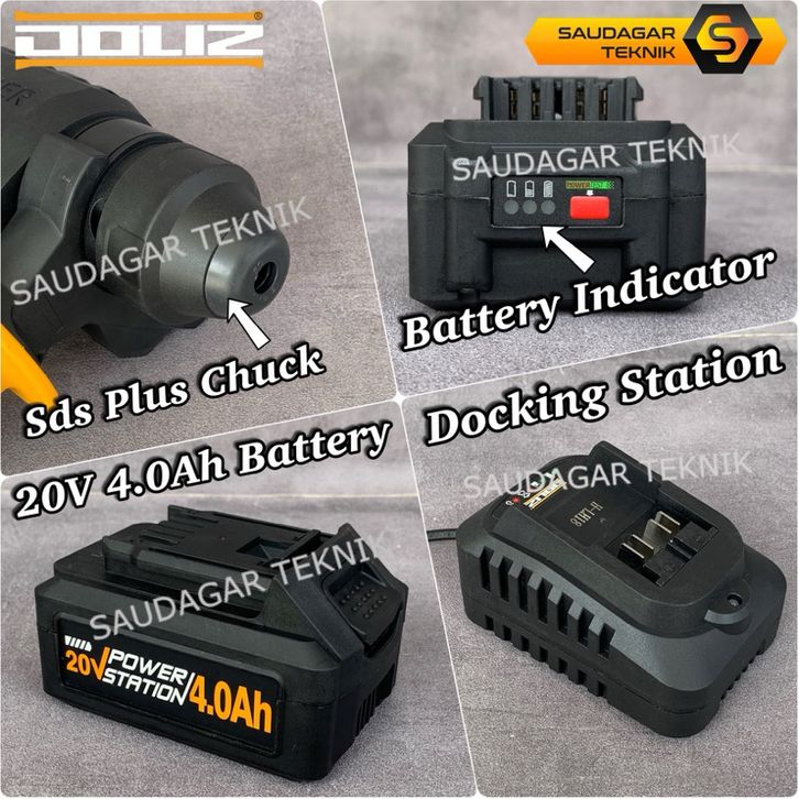 Mesin Bor Baterai Bobok Tembok Beton Doliz 20V BD 720 Sds Plus Brushless Motor Cordless Rotary Hammer Mesin Bor