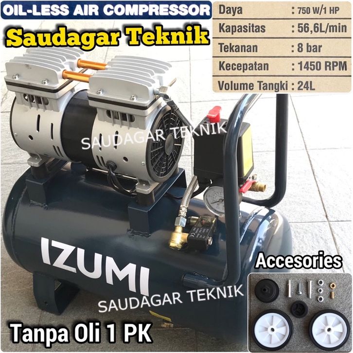 Kompresor Izumi OL 0724 OL 1024 Mesin Kompresor Angin Silent Oiless Tanpa Oli 3/4 Hp 1 Hp 24 Liter Izumi By NLG
