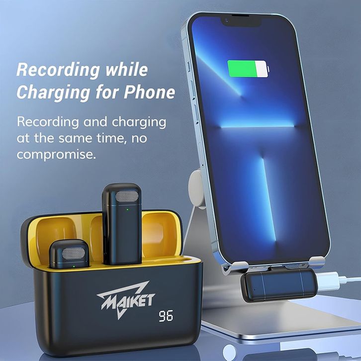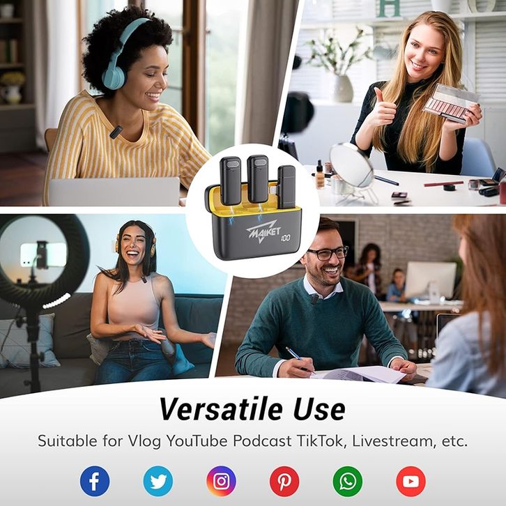 microphone wireles jepit youtuber bluetooth MAIKET Mic Wireless Clip On Dual Mic Youtuber/TikTok Case Charging + Noise