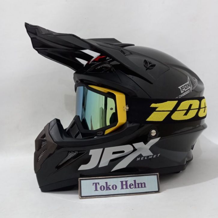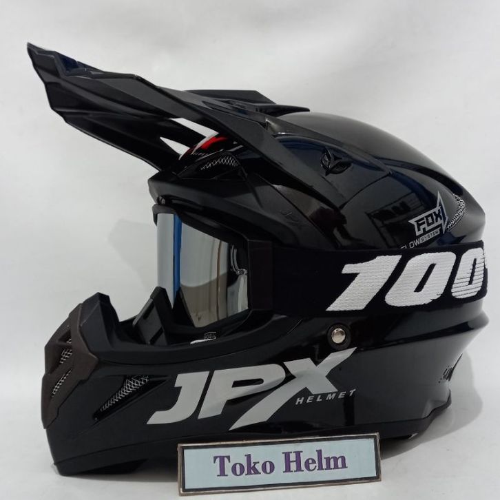 Helm JPX cross FOX 1 solid black metalic plus google 100GS