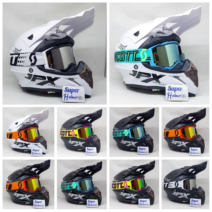 Helm JPX Cross Fox1 polos black doff/black metallic/pearl white + GOGGLE SCOTT goggle saja