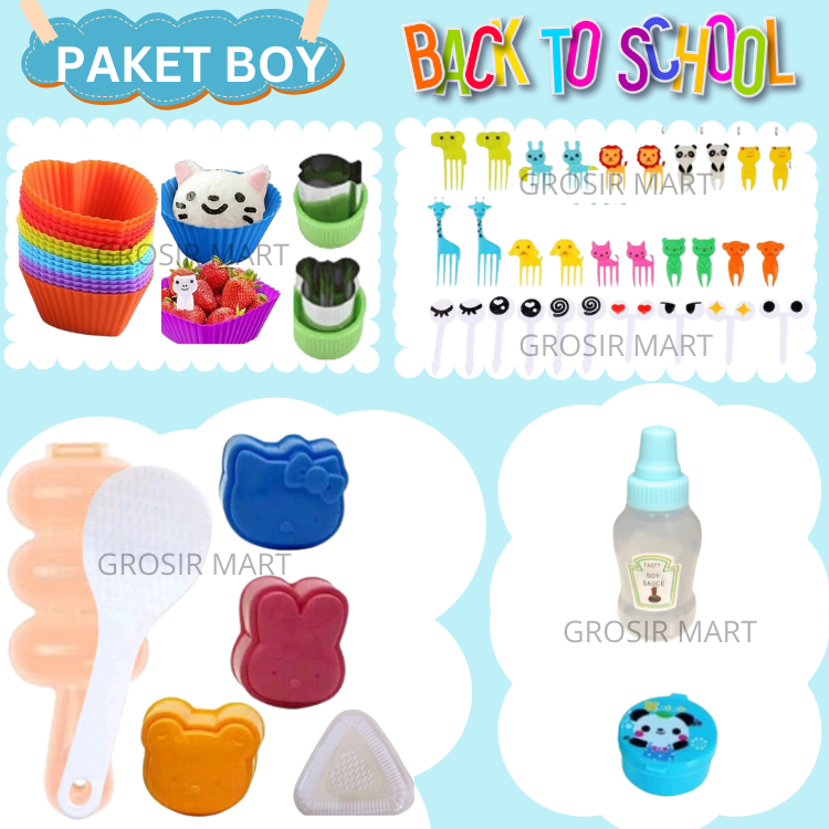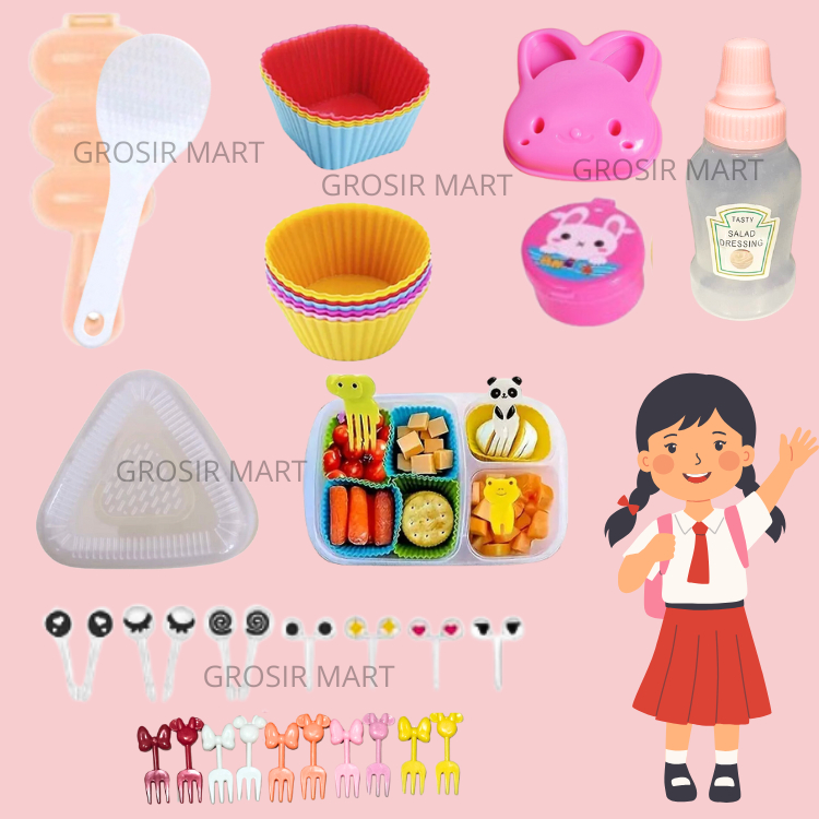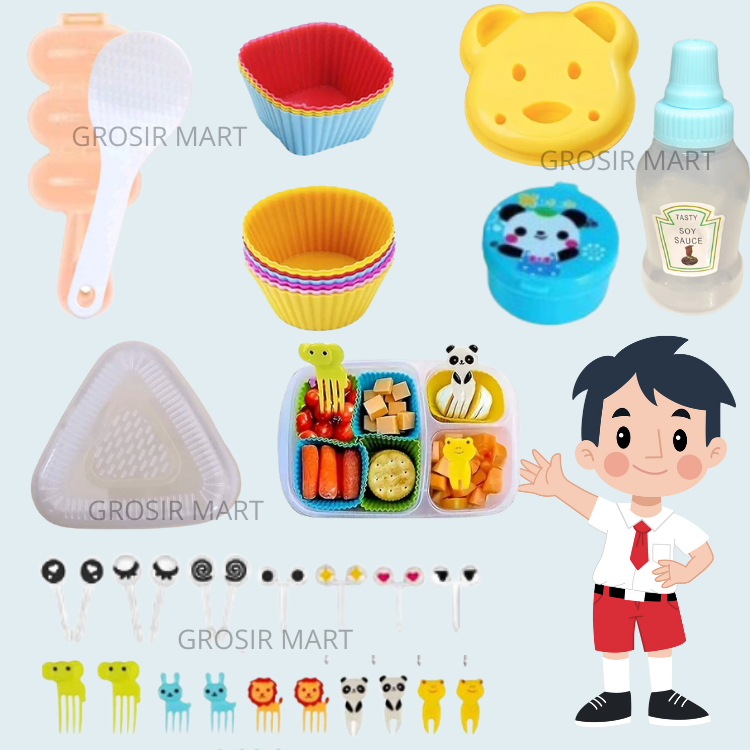 LEBIH MURAH Paket Bento Anak Perempuan Girl Boy Laki-laki Lengkap bekal makan anak Sekolah TK SD Paud Bento Tools Perlen