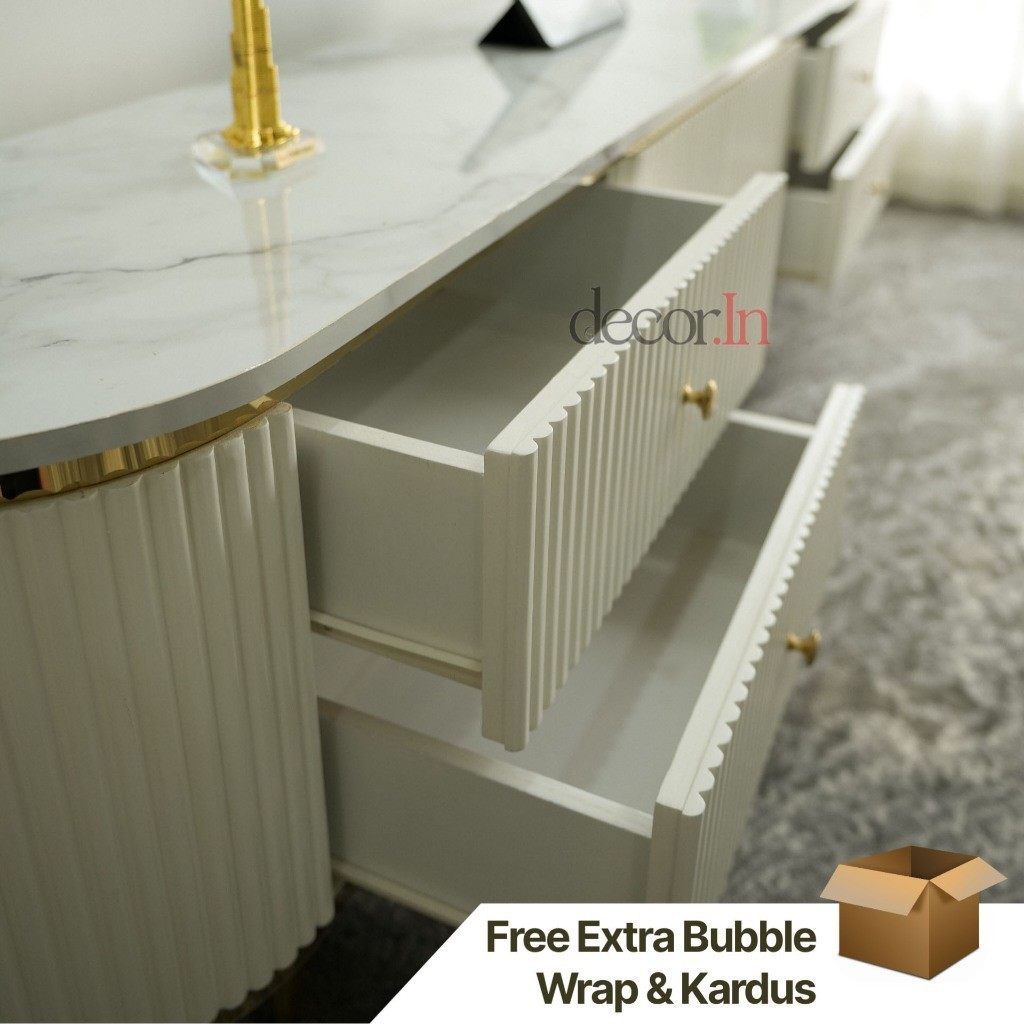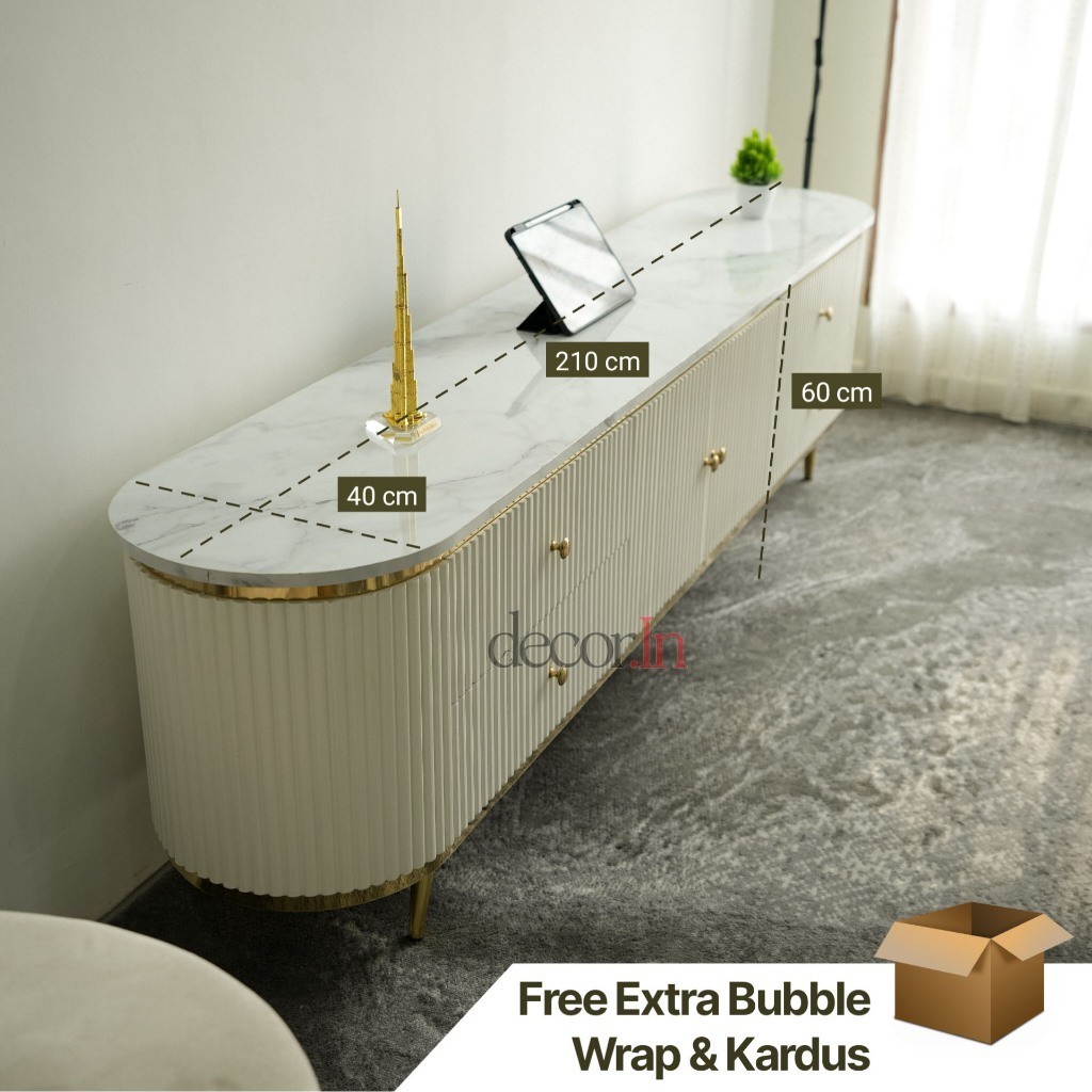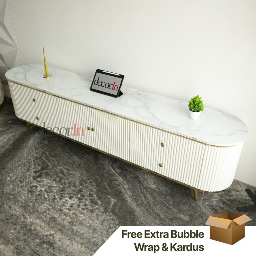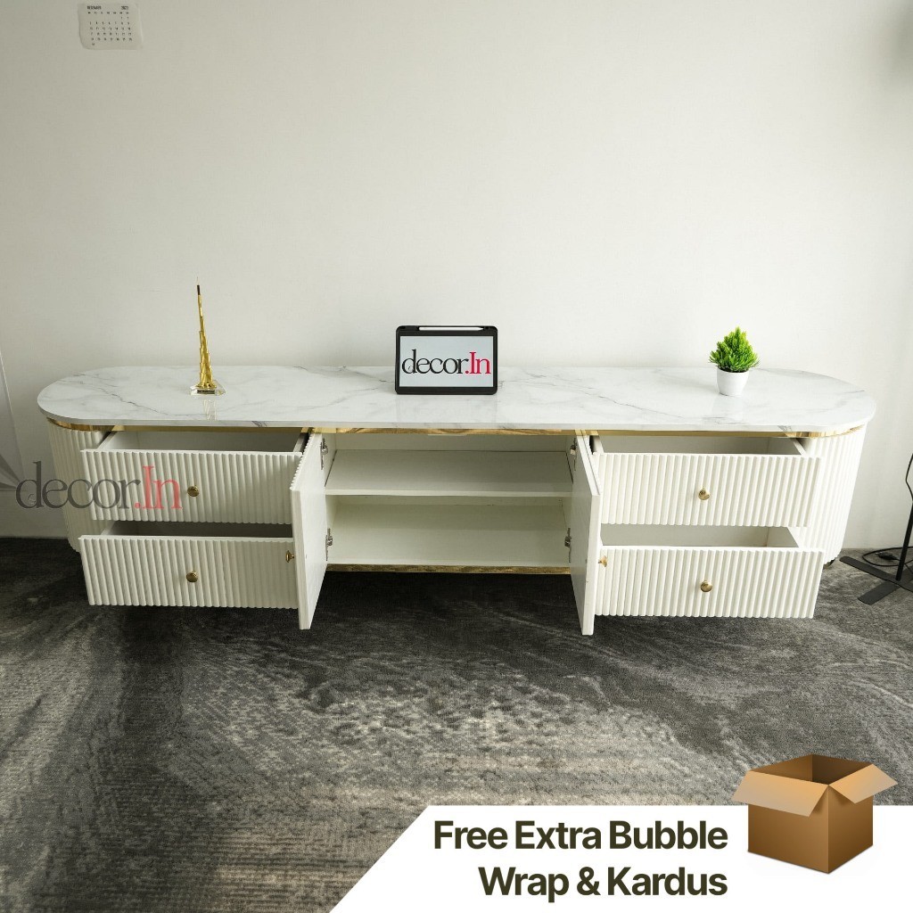 DECORINESIA BUFET TV MINIMALIS AESTHETIC INDUSTRIAL FINISHING DUCO T0P TABLE HPL MOTIF MARMER ADHEVA