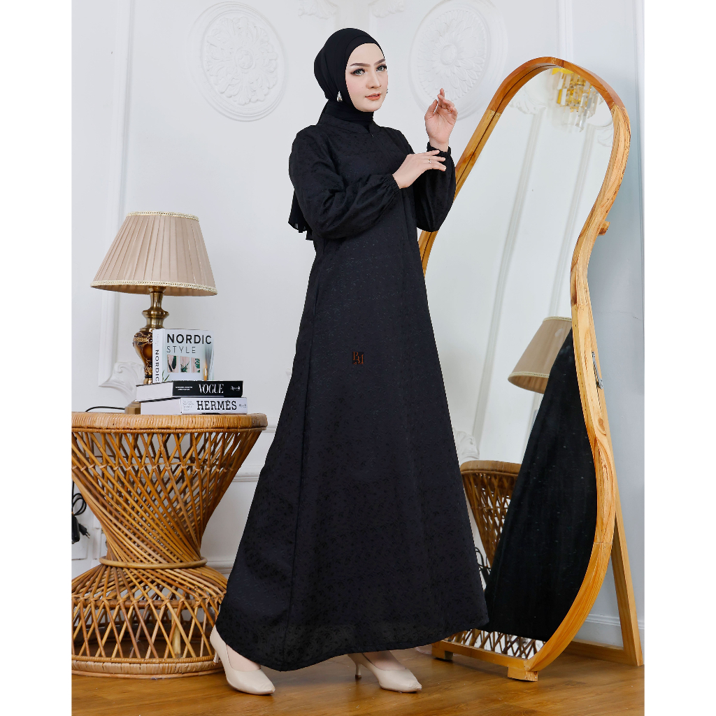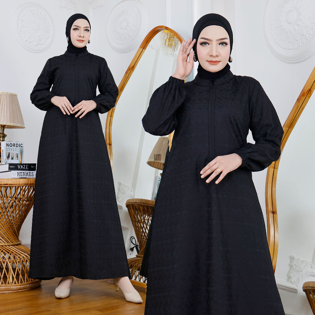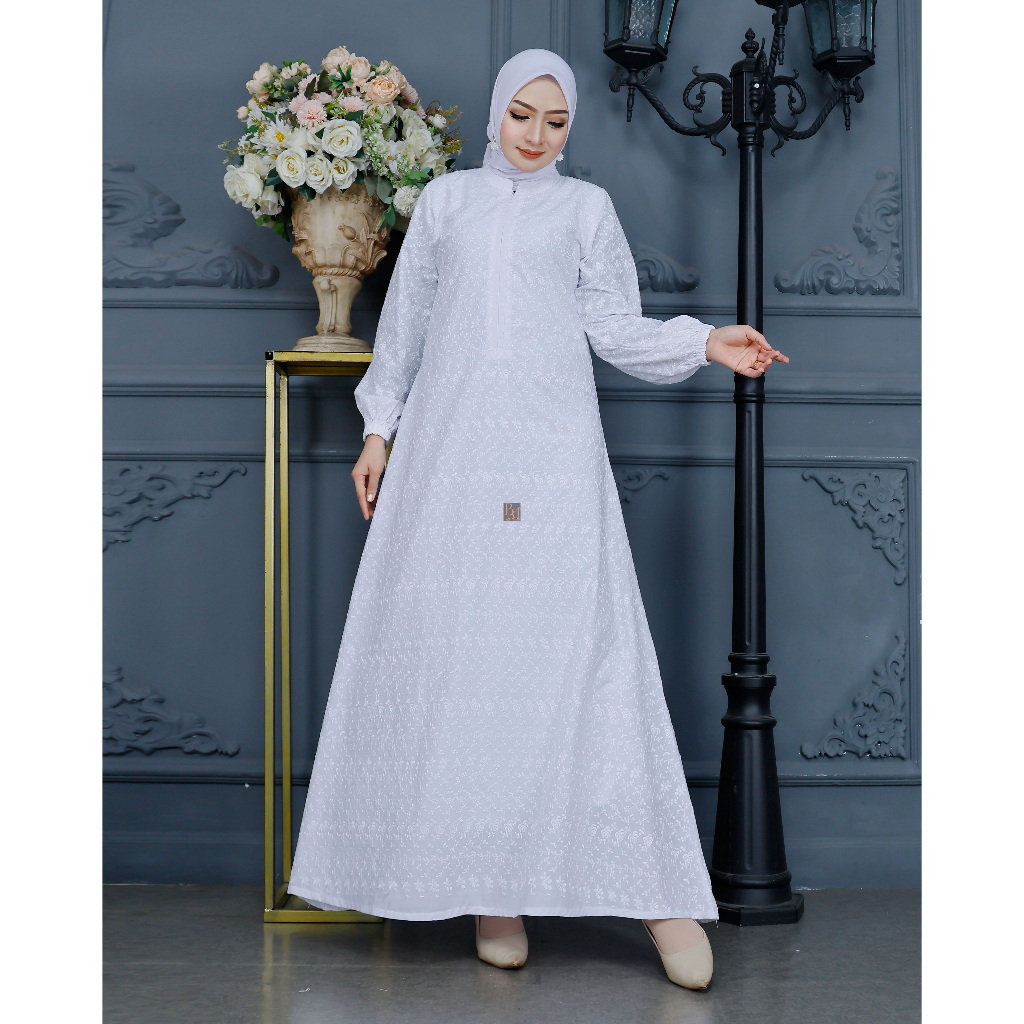 [Mall] BIYAI - RIDA GAMIS WANITA MUSLIM PUTIH HITAM BORDIR MOTIF BUNGA UMROH HAJI BAHAN KATUN PREMIUM