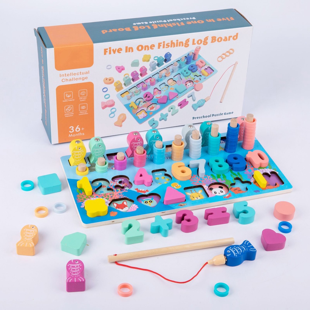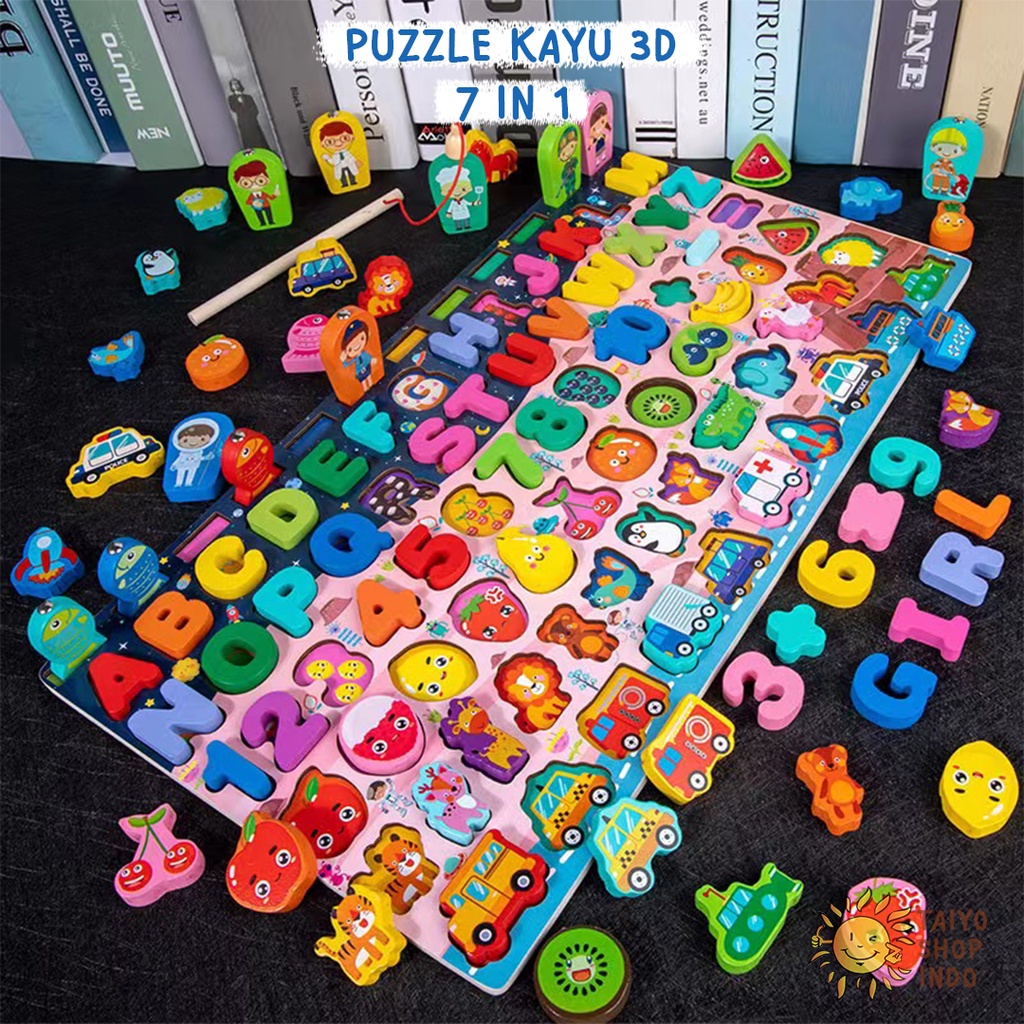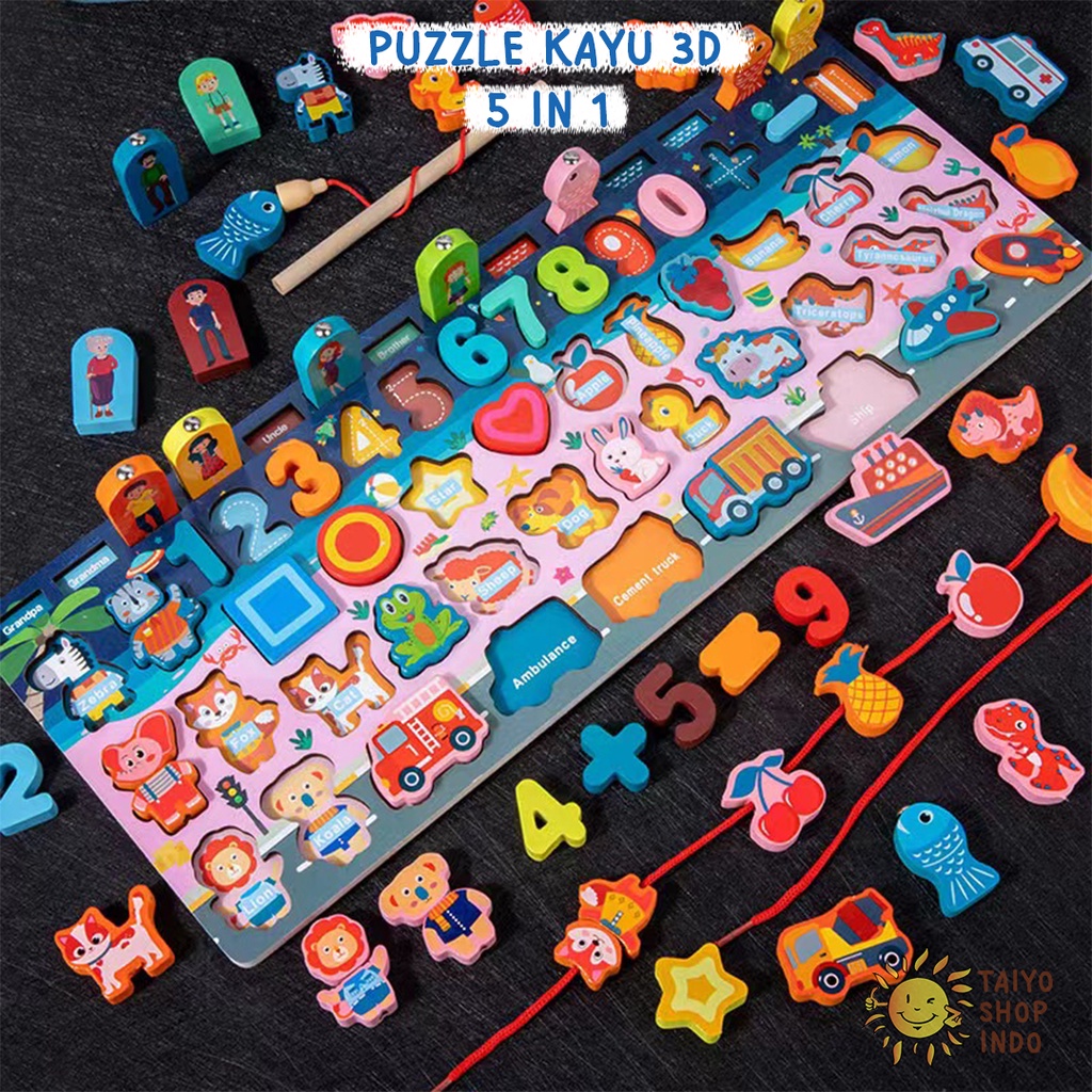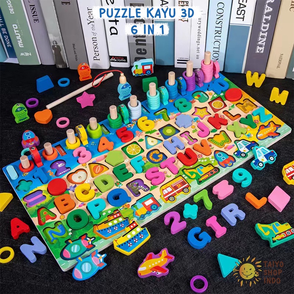 TAIYO Puzzle Kayu 3D Premium 6IN1 Tingkat Besar Jumbo Angka Huruf Animal Family Edukasi Mainan Anak
