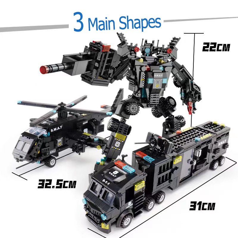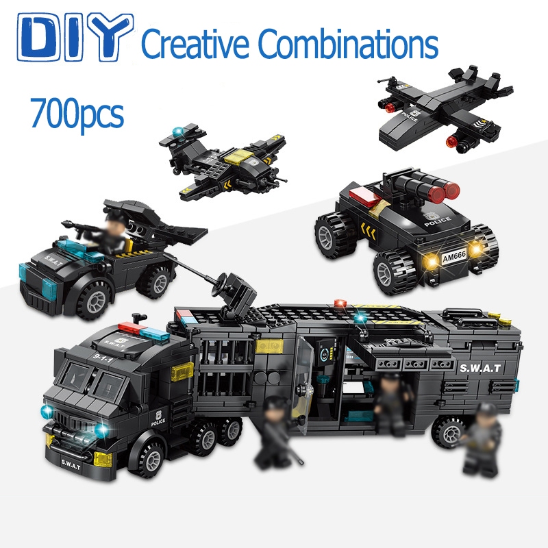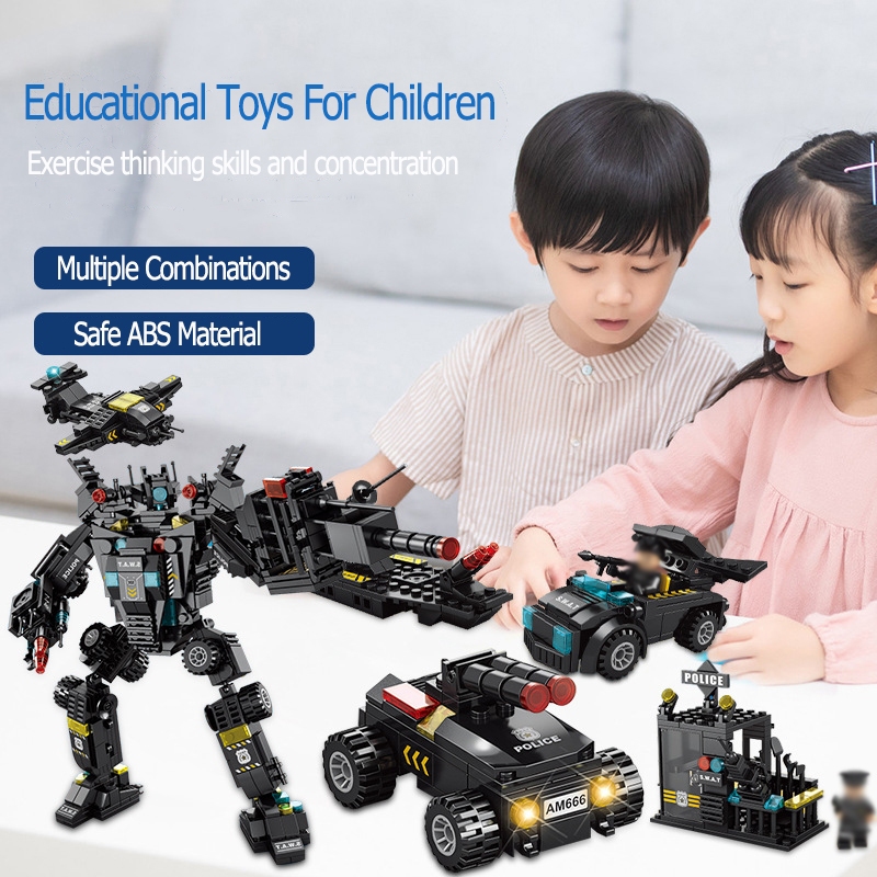 ZHEGAO Mainan 700Pcs Robot Polisi Hawk SWAT Model Puzzle Blok Bangunan robot mainan anak laki laki