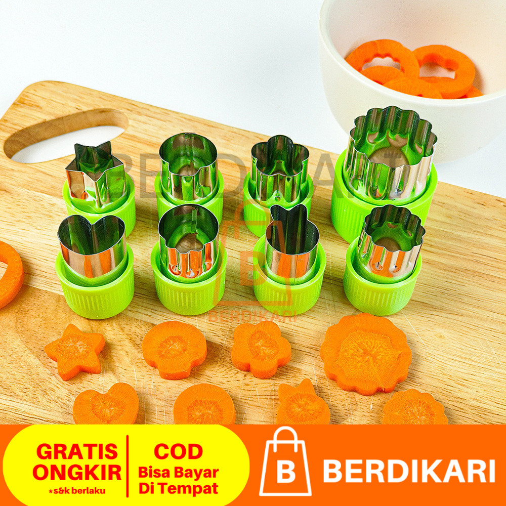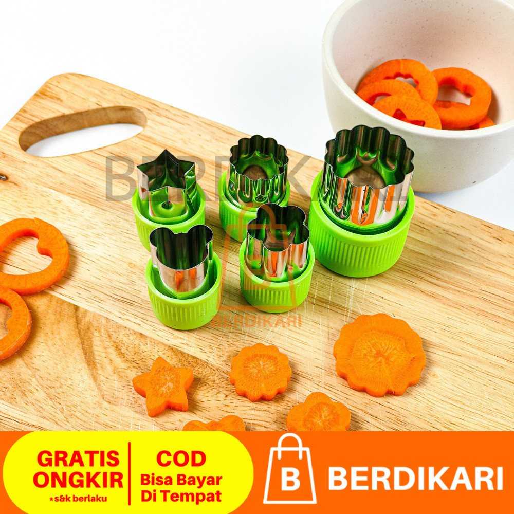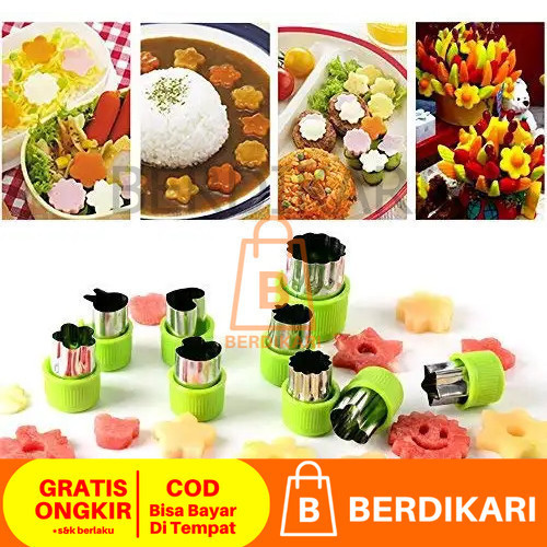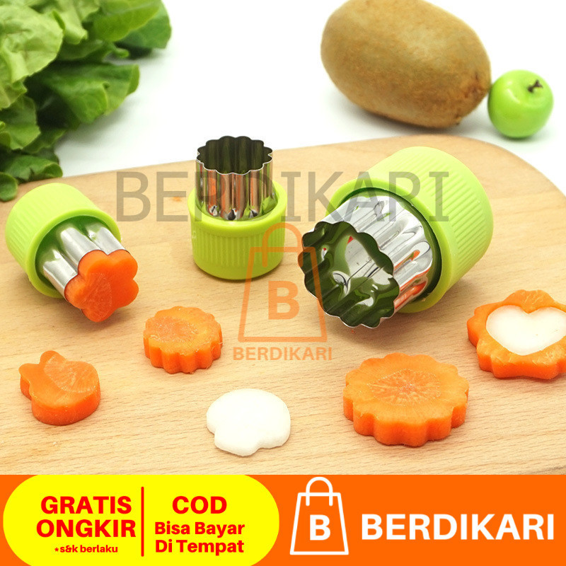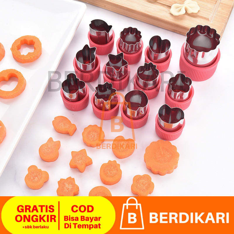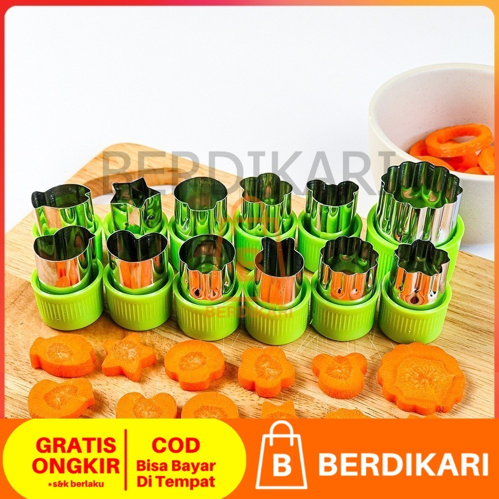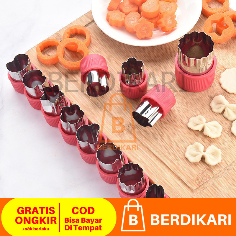 Berdikari 12pcs / set Cetakan Pemotong Sayuran Buah Kue Keju Biskuit Bentuk Bunga Bintang Hati Ikan Kelinci Ber Bahan St