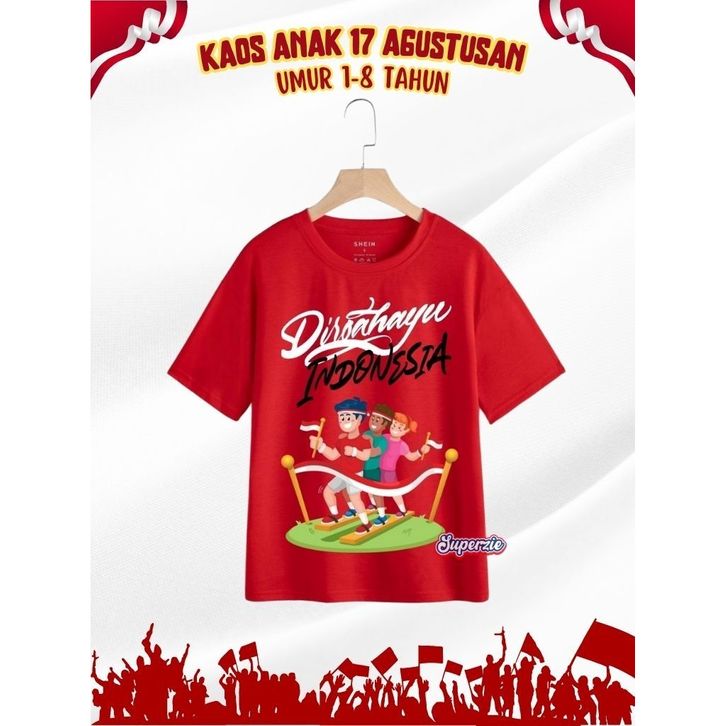 Baju Anak [ GRATIS NAMA ] Kaos Anak Kemerdekaan 17 Agustus Indonesia Umur 4-12 Tahun Sablon Print DTF Custom Kaos Anak