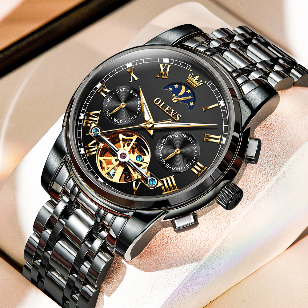 OLEVS Jam Tangan Automatic Pria Anti Air Original Tahan Multifungsi Led Tampilan Siang Dan Malam Yang Dinamis Chronograph Watch Men