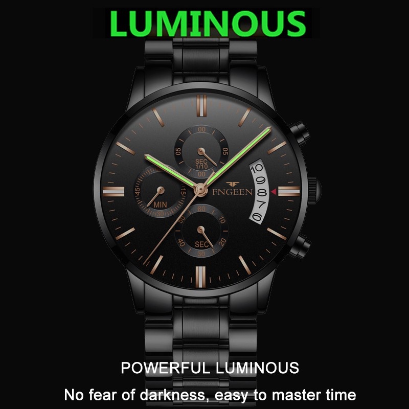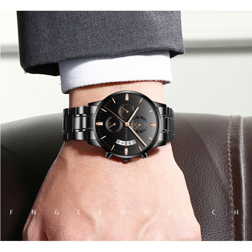 FNGEEN 5055 Jam Tangan Pria Luxury Stainless Steel Quartz Original Tahan Air Watch + Kotak Gratis