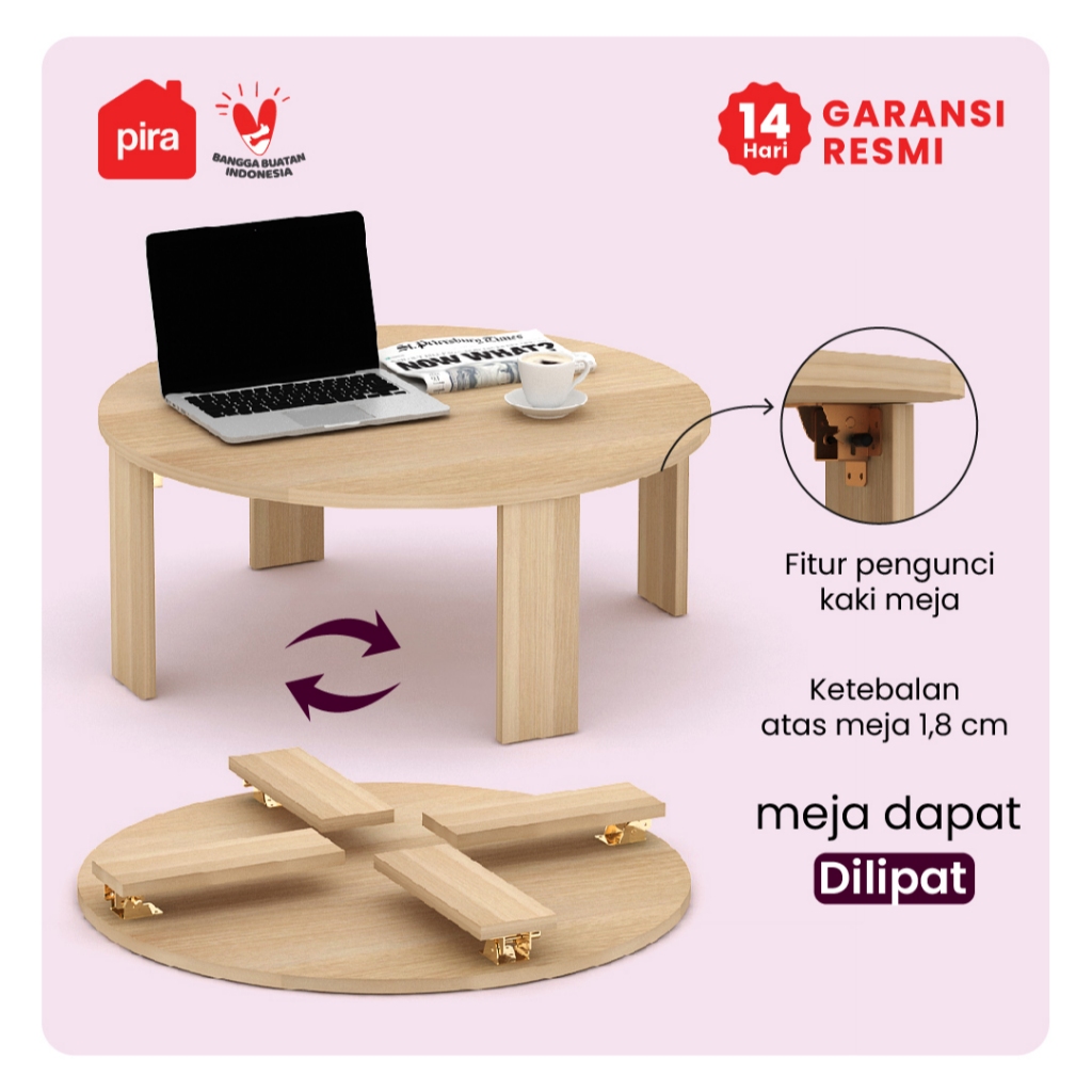 PIRA TABE ROUND80 MEJA TAMU BULAT MEJA MAKAN LIPAT LESEHAN MEJA BELAJAR LIPAT LESEHAN