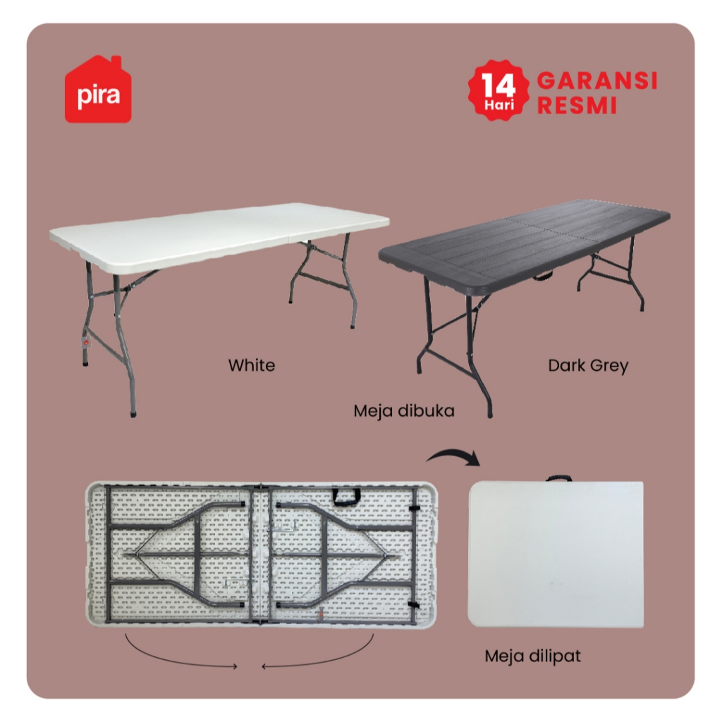 PIRA FOLDA FT180 WH MEJA SERBAGUNA MEJA LIPAT OUTDOOR MEJA TAMAN
