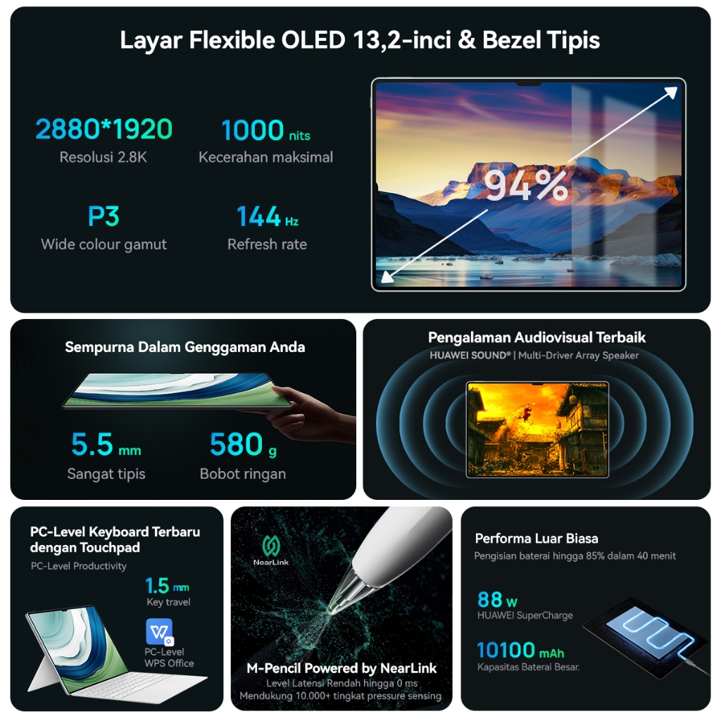 [FREE Pen+KB+Mouse] HUAWEI MatePad Pro 13.2" Tablet | 2.8K OLED | 144Hz | Touchpad Keyboard | NearLink M-Pencil | PC WPS Office | 88W HUAWEI SuperCharge