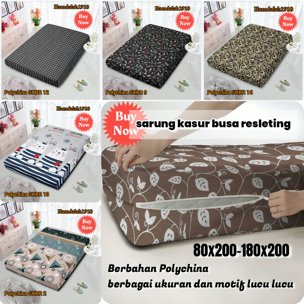 Sarung kasur busa resleting terlaris premium anti geser 80x200-180x200 berbagai macam motif