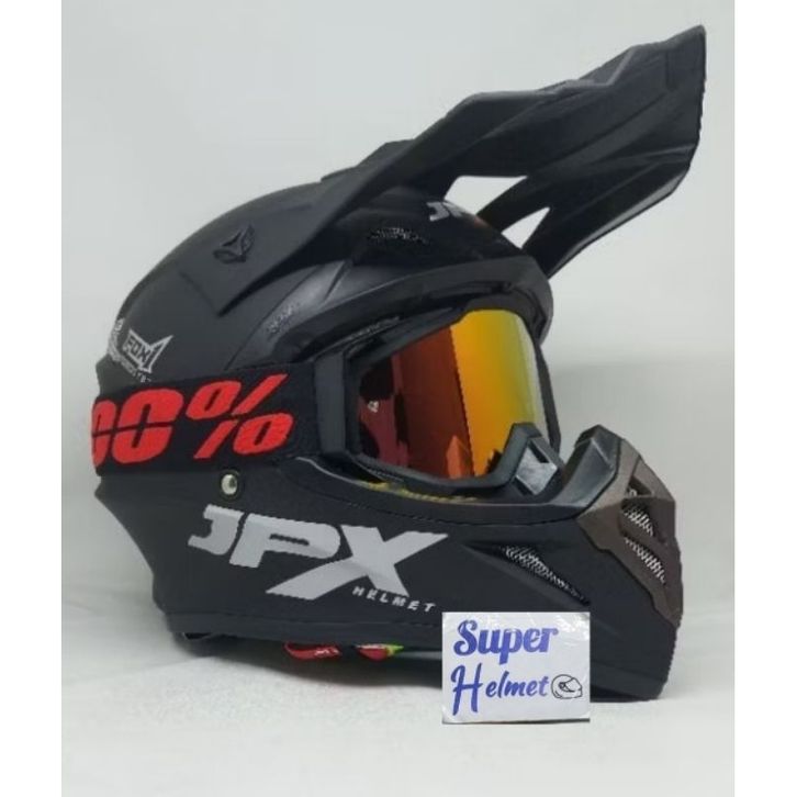 Helm cross JPX Cross Fox1 solid BLACK DOFF dan GOGGLE trail 100ongkir 2kg goggle saja