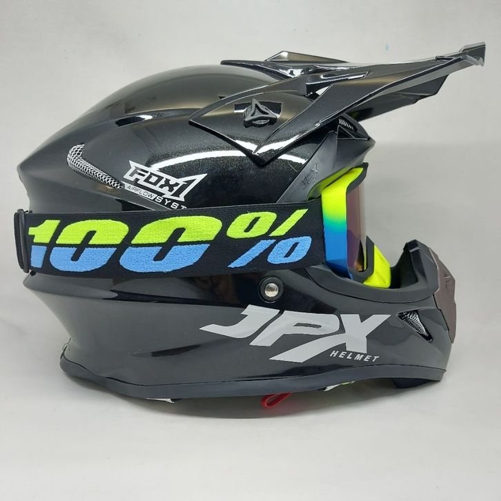 Helm trail JPX CROSS FOX1 Solid Black Metalic plus GOGGLE 100