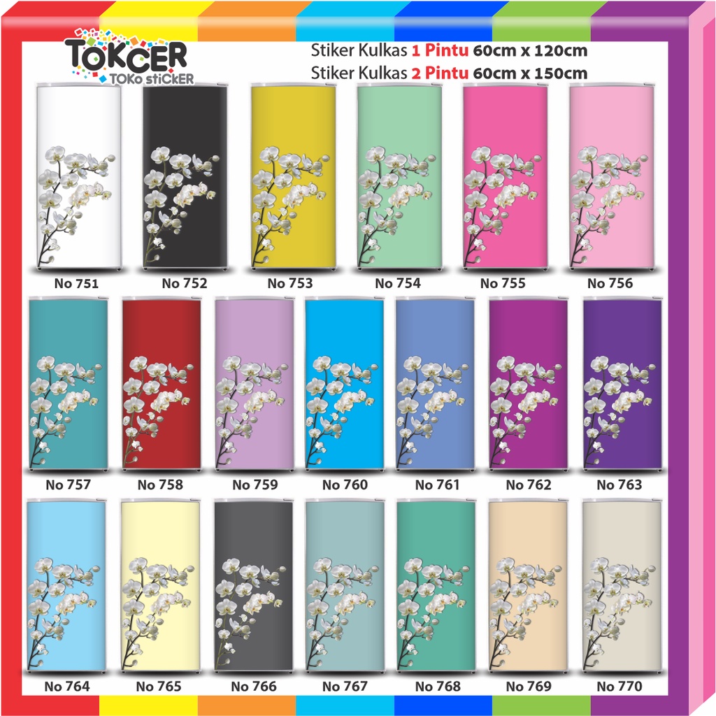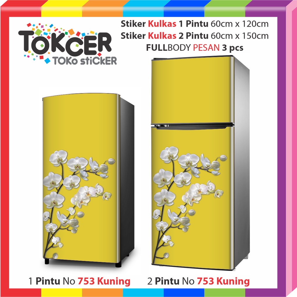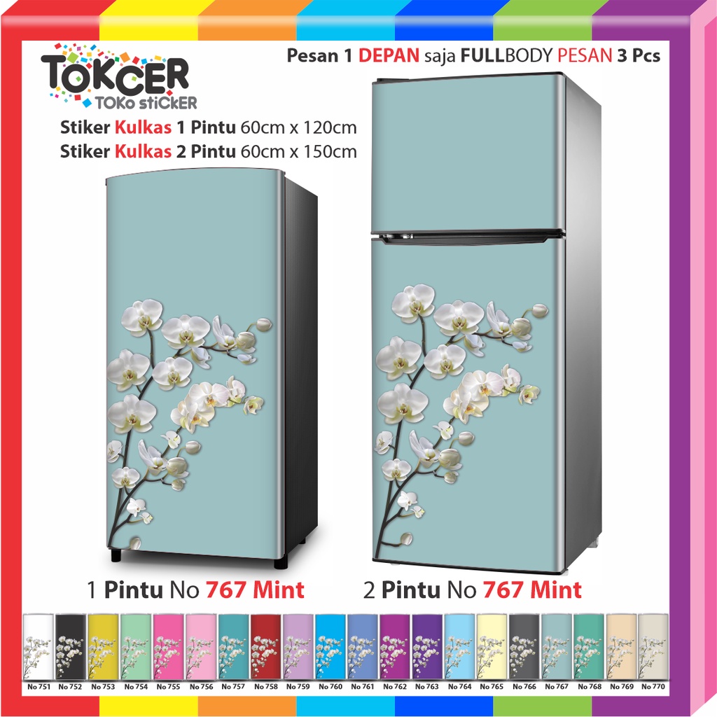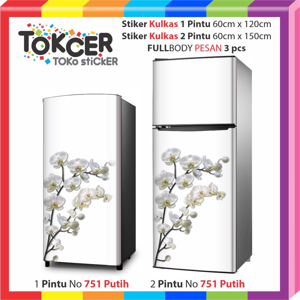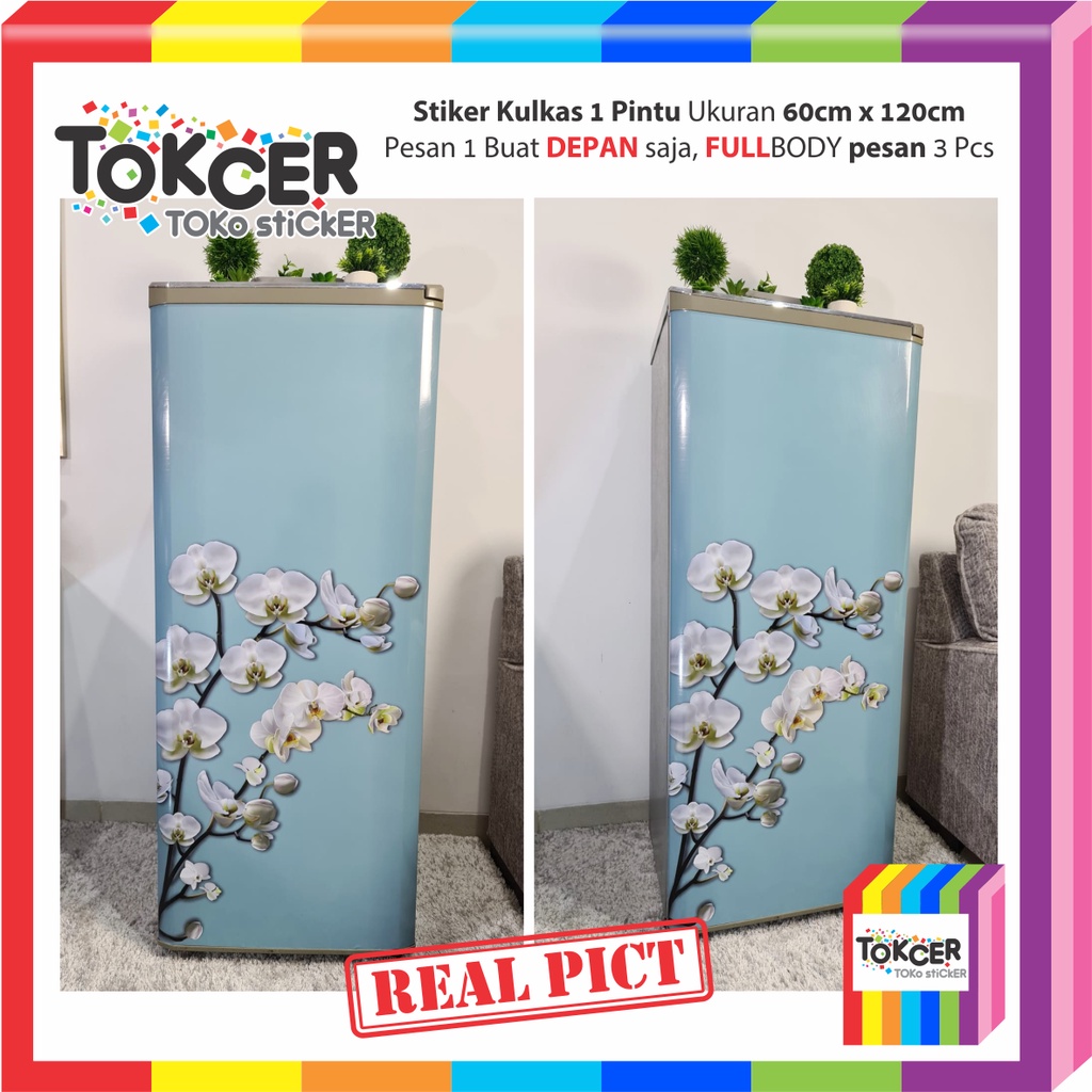 Stiker Kulkas LAMINATING GLOSSY Anti Luntur Uk 1 Pintu Atau 2 Pintu Bunga Putih