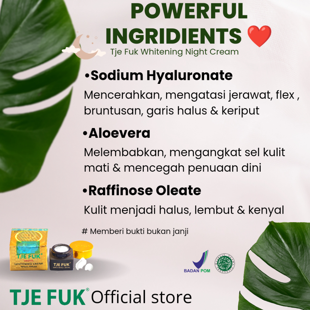 Tje Fuk Original Whitening Night Cream Krim Wajah Malam Aman BPOM 50Gr