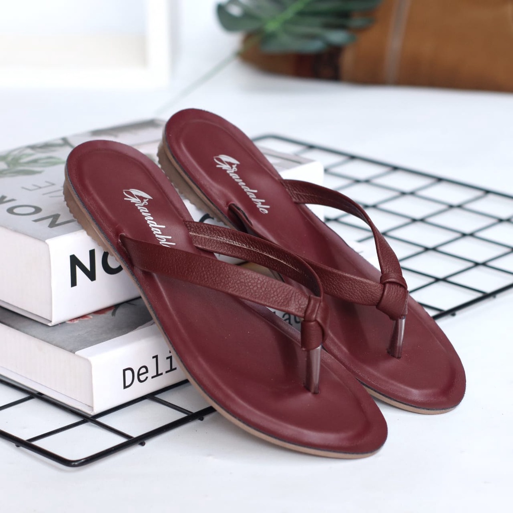 DOMINIC MONIK Sendal Sandal Jepit Kulit Asli Slop Santai Casual Original Wanita / Cewek