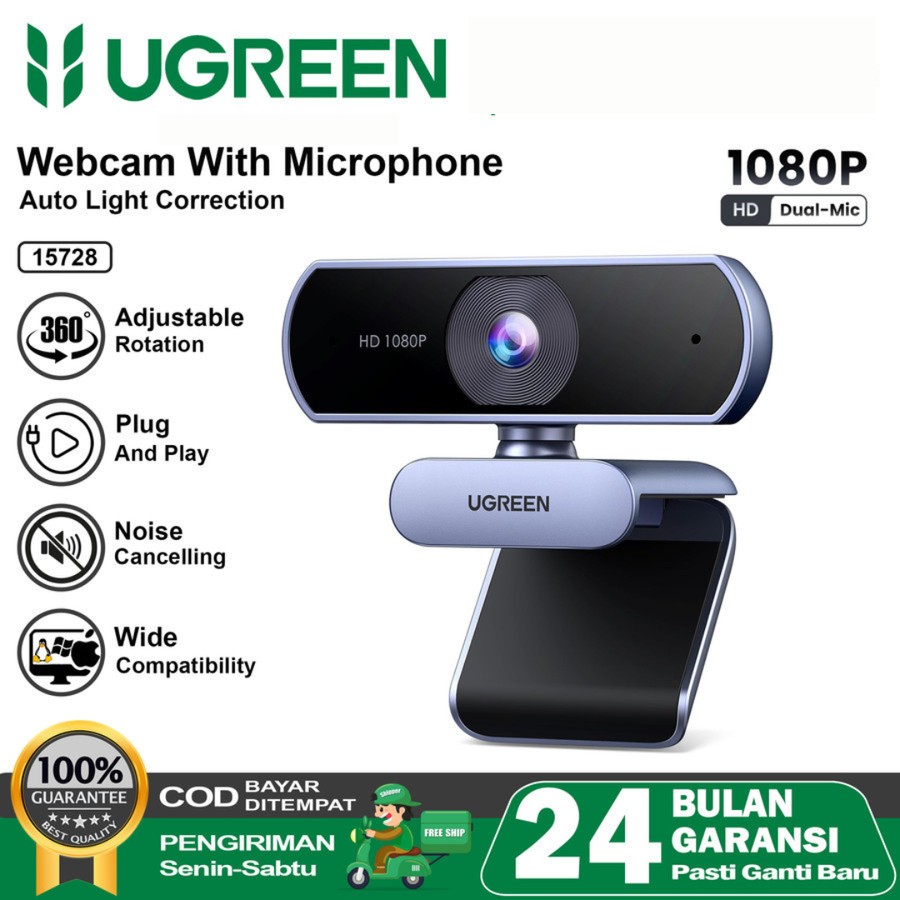 UGREEN Webcam 2K Full HD Resolution 1080P 60fps Built in Dual Mic, Auto Focus & Noise Cancelling