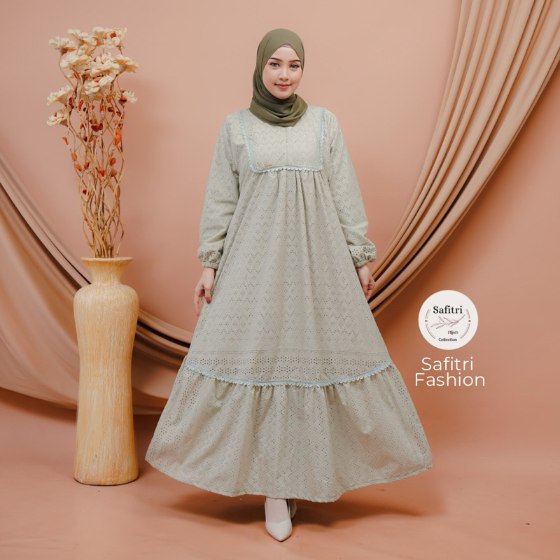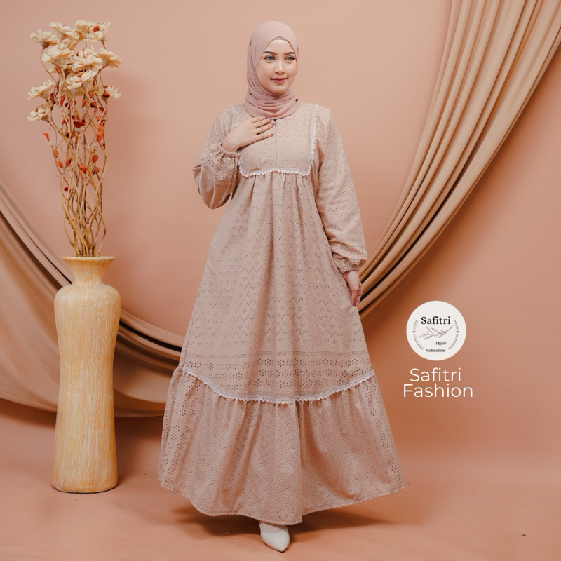 [Mall] ARUNA DRESS GAMIS BAHAN KATUN BORDIR BOLONG KATBOL TEBAL FULL FURING KONDANGAN MEWAH LUXURY MANASIK HAJI IHRAM BY SAFITRI FASHION
