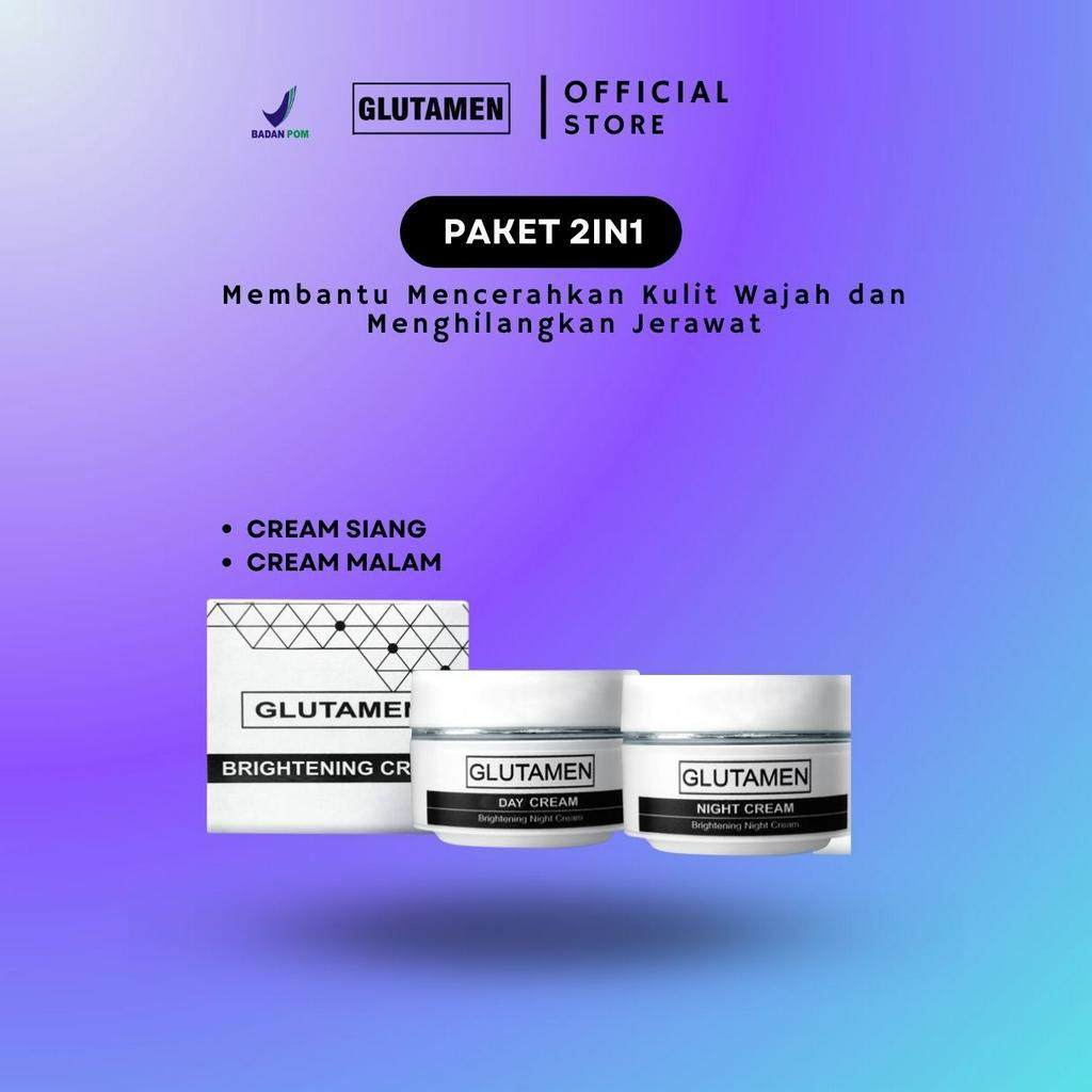 Glutamen Skincare Paket 2in1 Cream Siang dan Night Cream Penghilang Noda Hitam Wajah Bekas Jerawat Pria Resmi BPOM