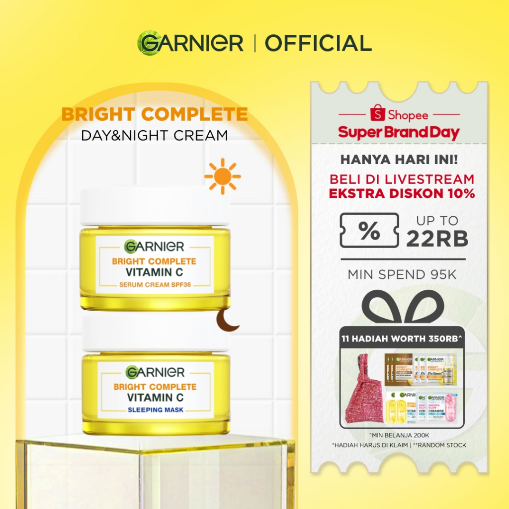 GARNIER Bright Complete Vitamin C Simple Set Day Cream & Night Cream 50 ml Bundle Paket Skincare - Krim Siang & Krim Mal
