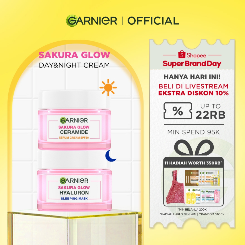 GARNIER Sakura Glow Ceramide Simple Set Krim Wajah Glowing Day Cream & Night Cream 50 ml Bundle Paket Skincare - Krim Si