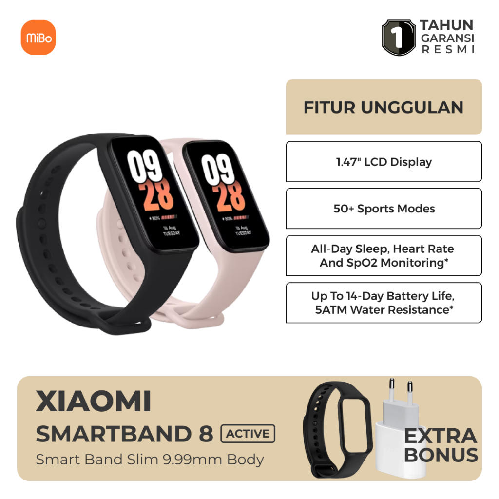 Xiaomi Smart Band 8 Active Layar Terang 1.47" Baterai Tahan Lama Pemantauan Tidur dan Detak Jantung Garansi Resmi