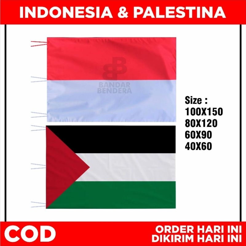 Bendera Indonesia & Palestina Ukuran 40x60-100x150 Cm
