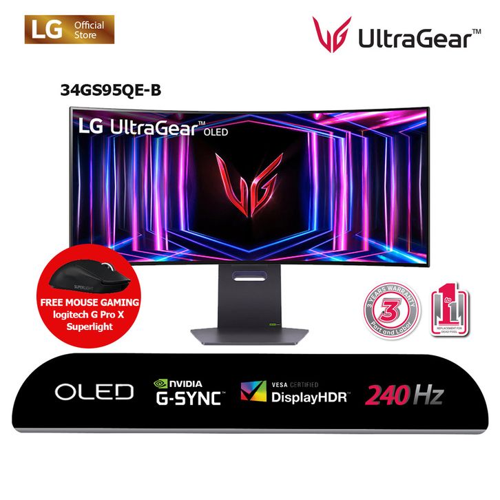 LG UltraGear OLED 34GS95QE-B Curved Gaming Monitor Ultra-WQHD with 240Hz 0.03ms NVIDIA G-SYNC Compatible